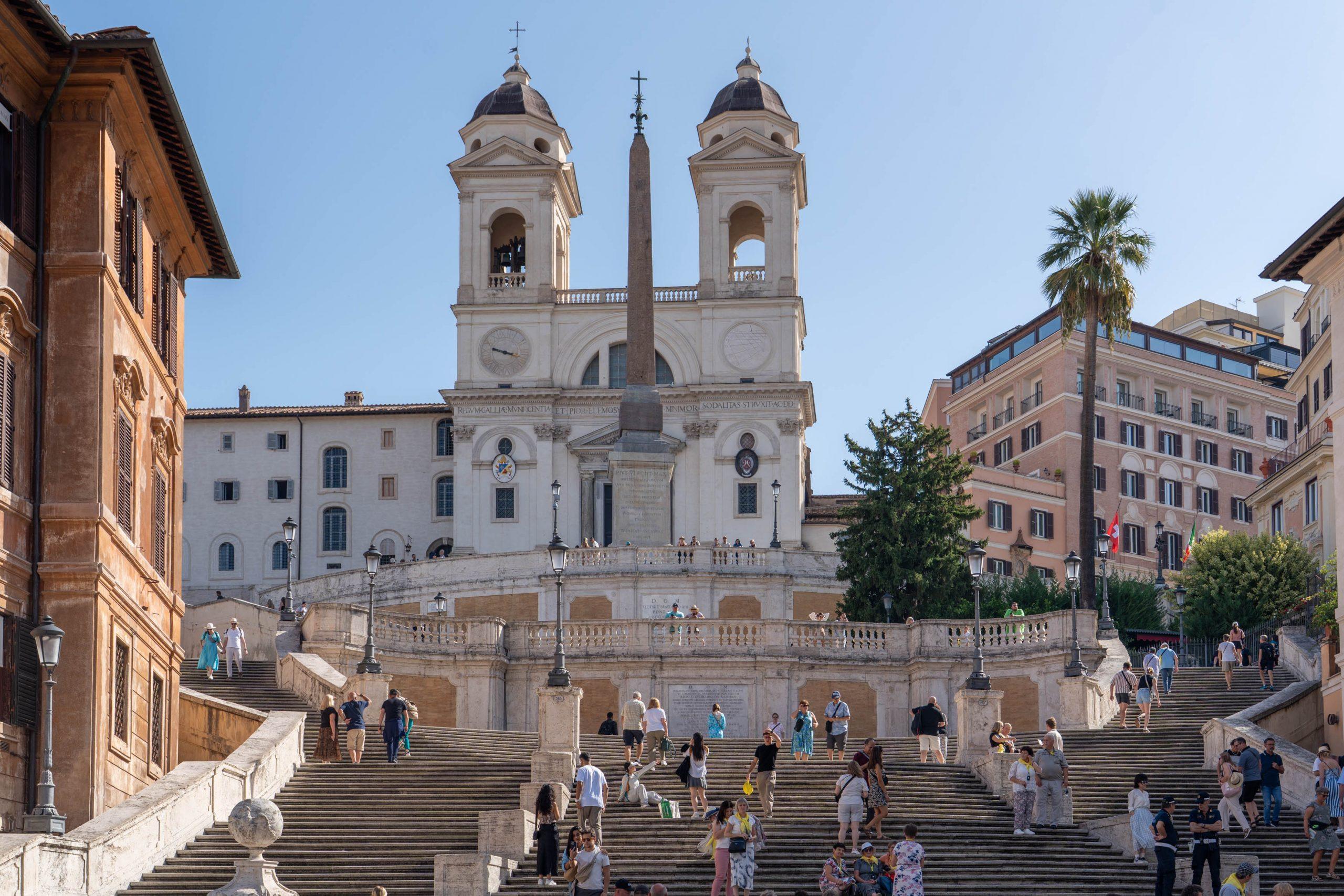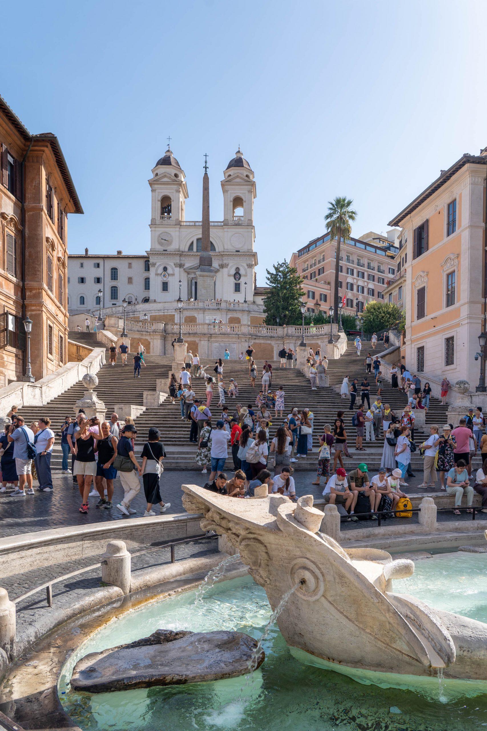 Once we had seen enough, we returned to the streets of Rome on our way to the final place we wanted to visit, the famous Spanish steps, a monumental Baroque staircase in Rome, Italy, built between 1723 and 1725 by Francesco de Sanctis, linking the Spanish Embassy to the Holy See in Piazza di Spagna below to the church of Trinità dei Monti above. Featuring 135 travertine steps arranged in ramps and terraces, the steps are a popular gathering spot, a picturesque landmark and are adorned with the Fontana della Barcaccia at their base.