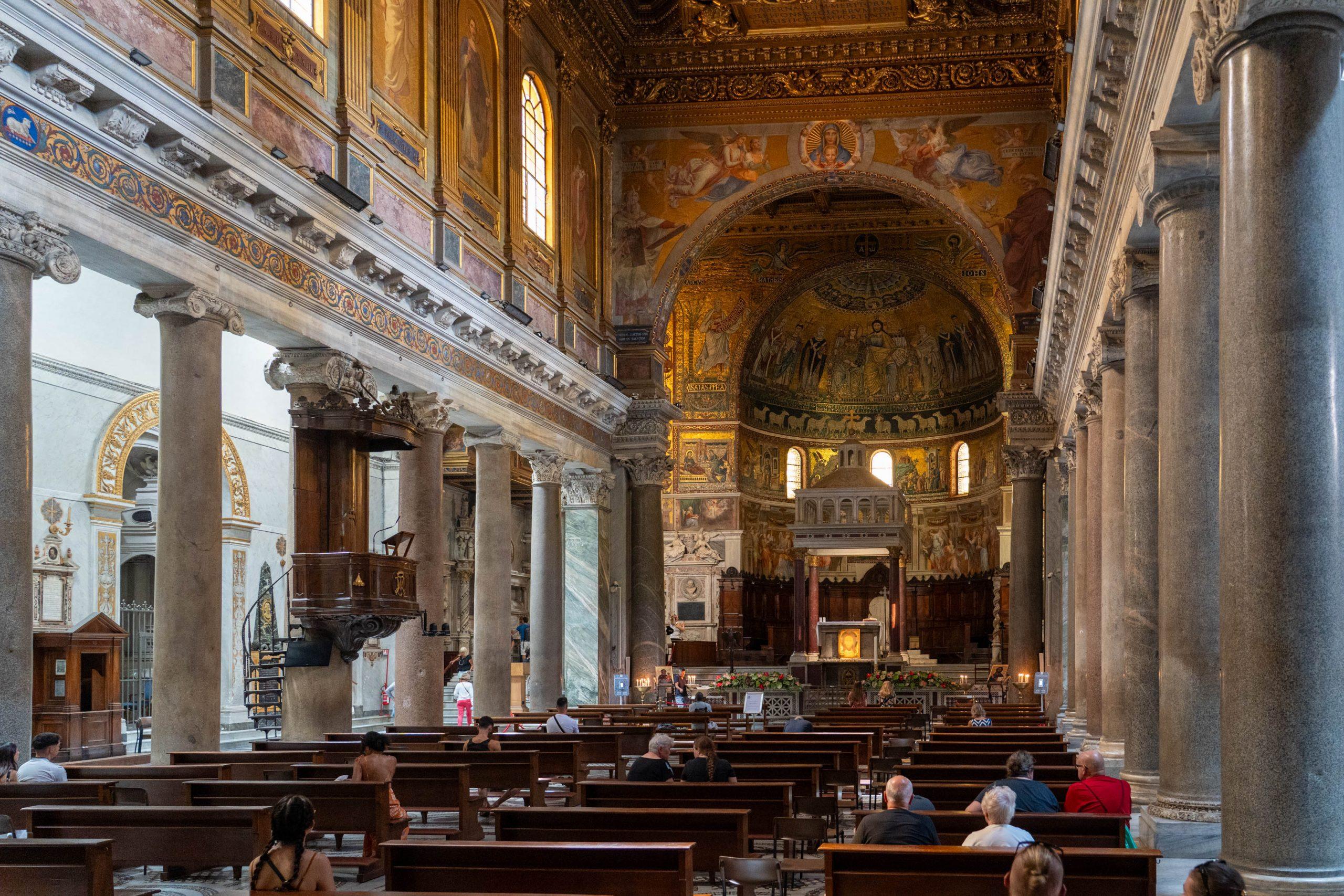 It was rebuilt during the pontificate of Pope Innocent II, Many parts of the church date back to the 12th century; the mosaics, especially those of the façade and those of the apse made by Pietro Cavallini and depicting the “Life of the Virgin”, are important.