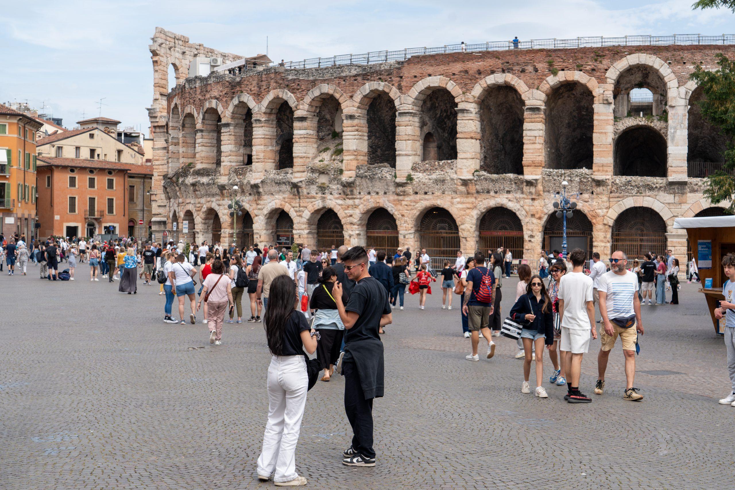 It was really wonderful to stroll through Verona without a set itinerary and somehow, we ended up at Piazza Bra again which houseds the famous arena. We also saw the Torre dei Lamberti, a prominent medieval tower in Verona, Italy, standing at 84 meters (275 feet), making it the tallest structure in the city. Construction began in 1172 by the Lamberti family, and over the centuries, the tower was expanded and modified, reaching its current height in the 15th century.