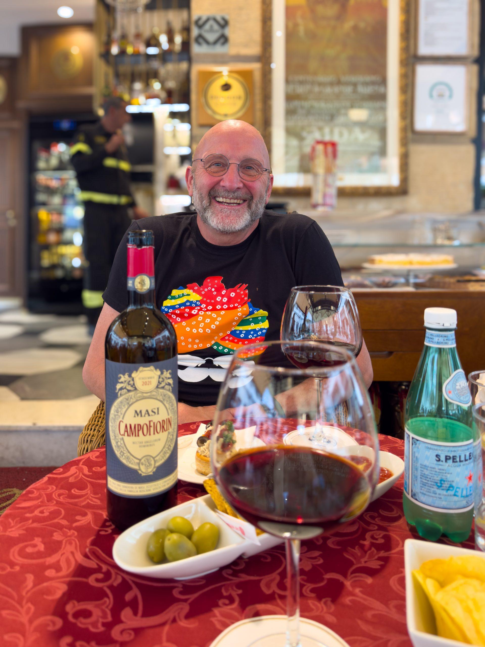 The bikes were returned, our umbrellas unpacked and we made it to the first trattoria for another glass of Amerone whilst the weather gods showed their middle finger to us.