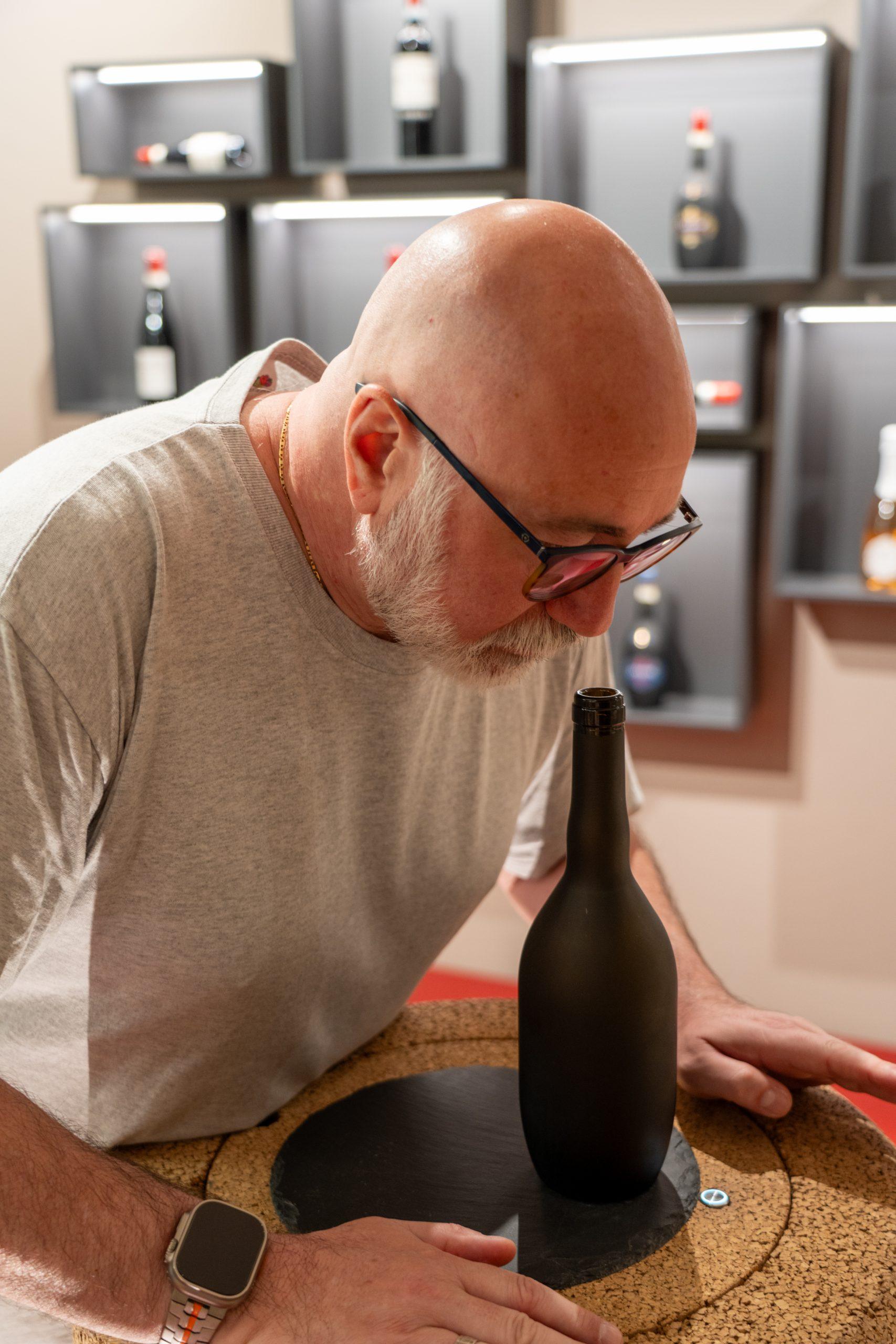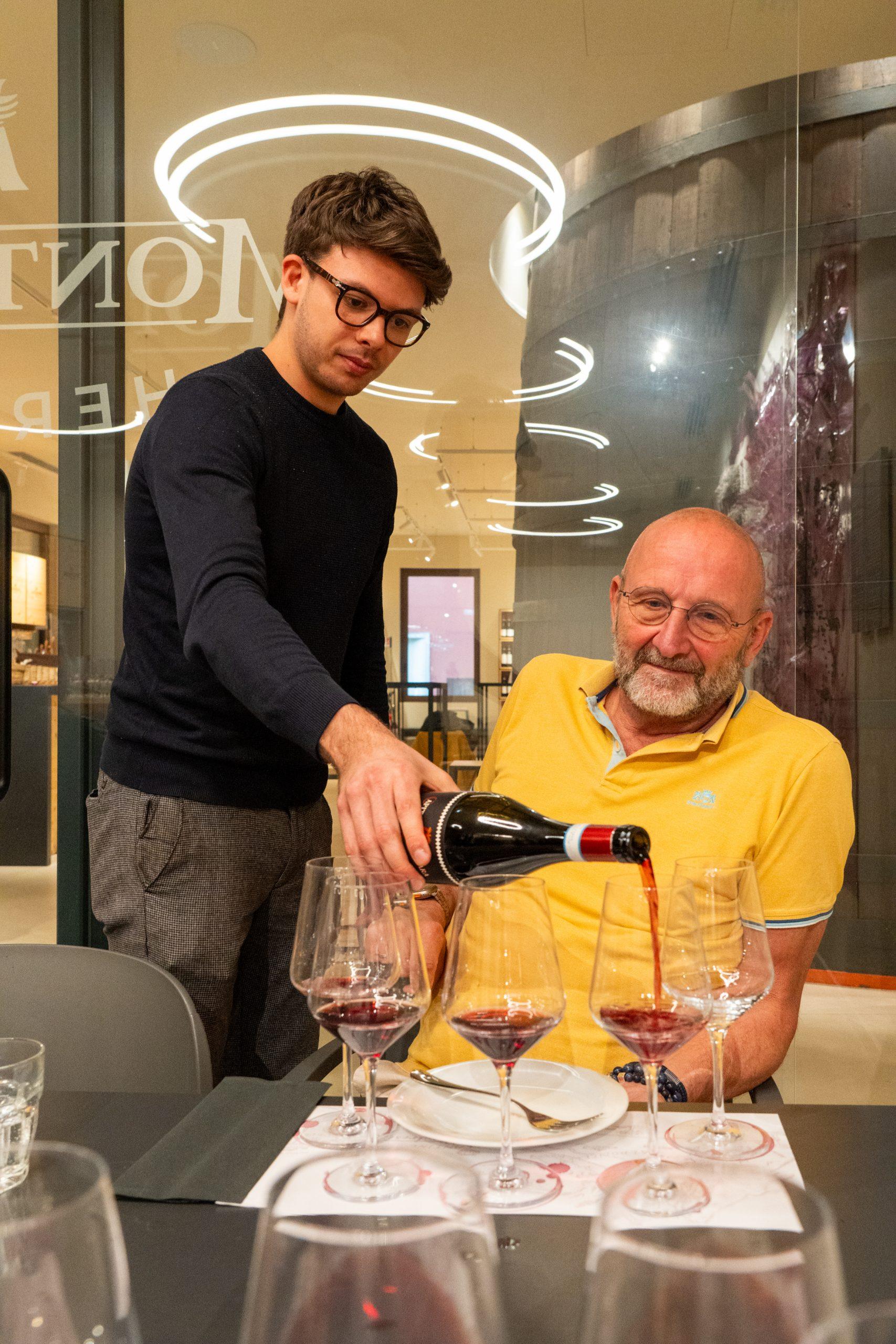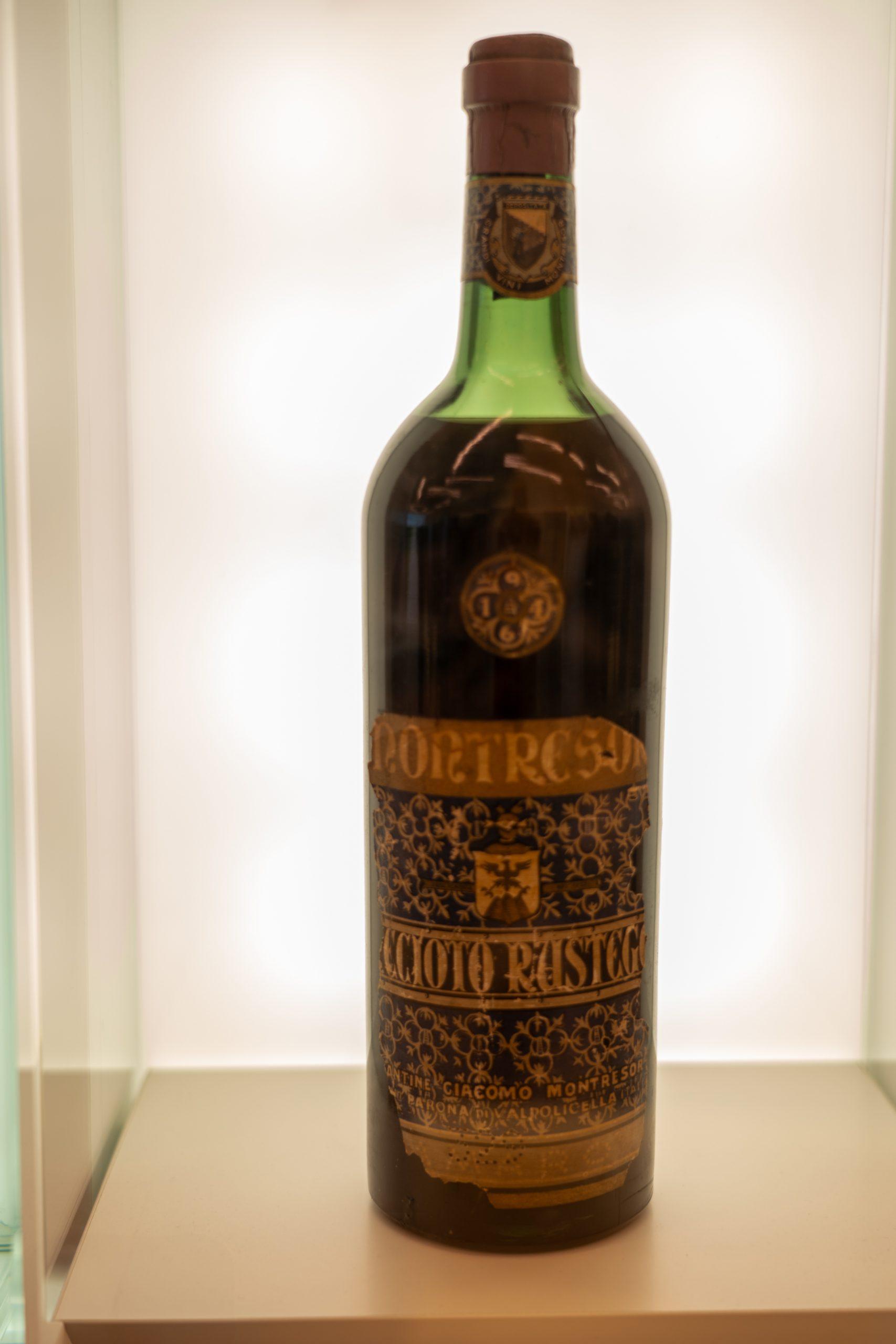 The bottle was still closed but by a wine preserving system the cork was penetrated by a needle to serve the wine, after which the empty space immediately was filled with argon gas to preserve the precious wine.