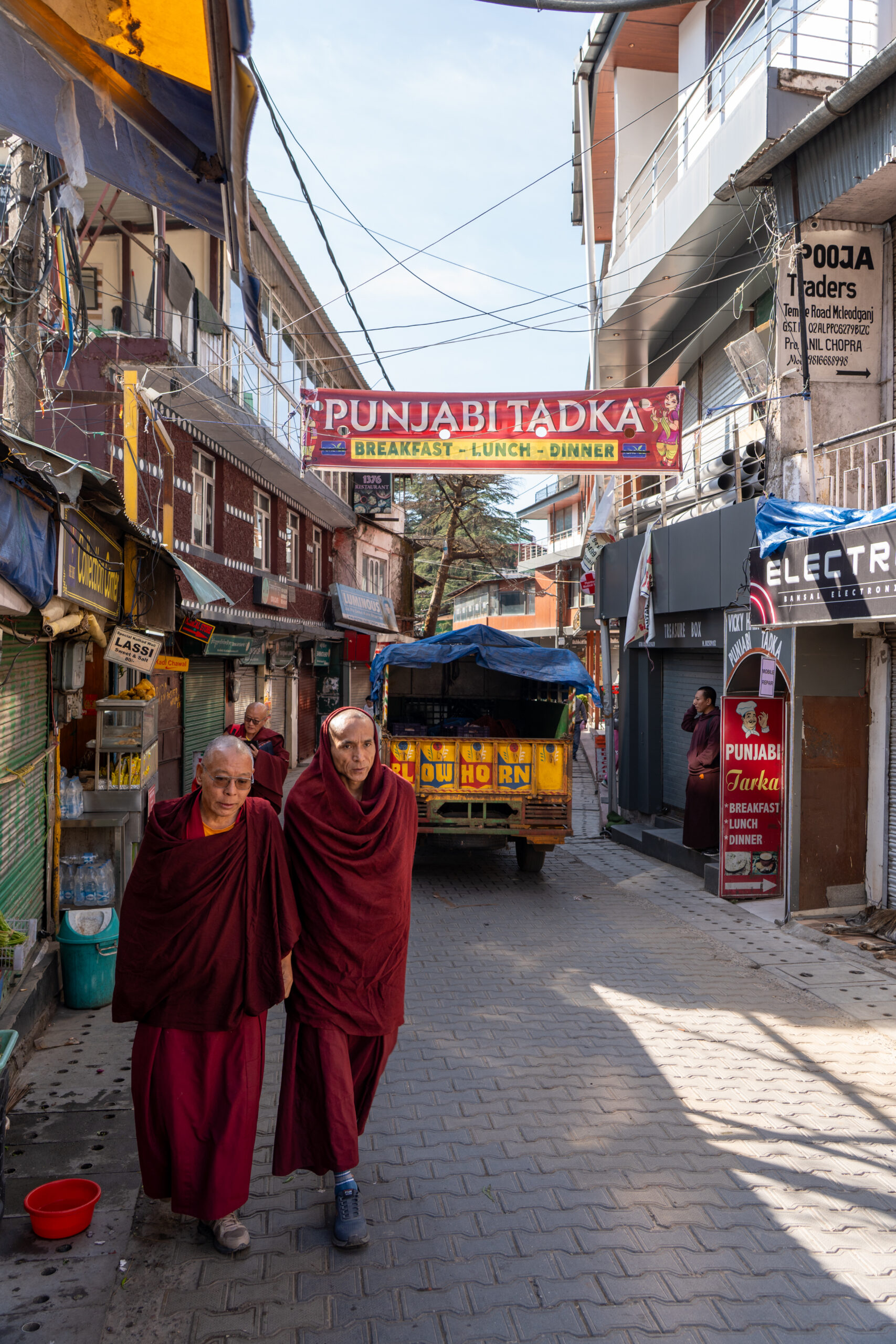 Looking out of the window after I woke up, I saw it was slightly overcast. It was my plan to do a second hike today to Triund in order to get some close-up views of the Dhauladhar Range. But with it being overcast it did not make sense to make that strenuous 7-hour hike so I decided for to for another relaxing stroll through Mcleod Ganj and make some extra pictures.