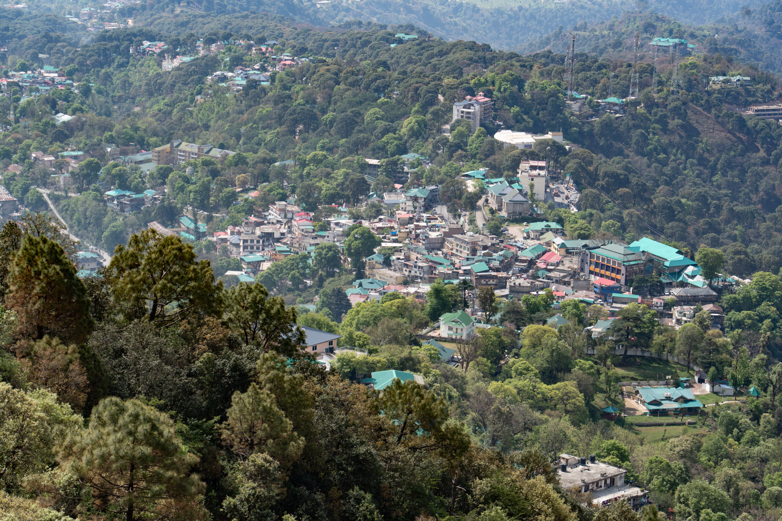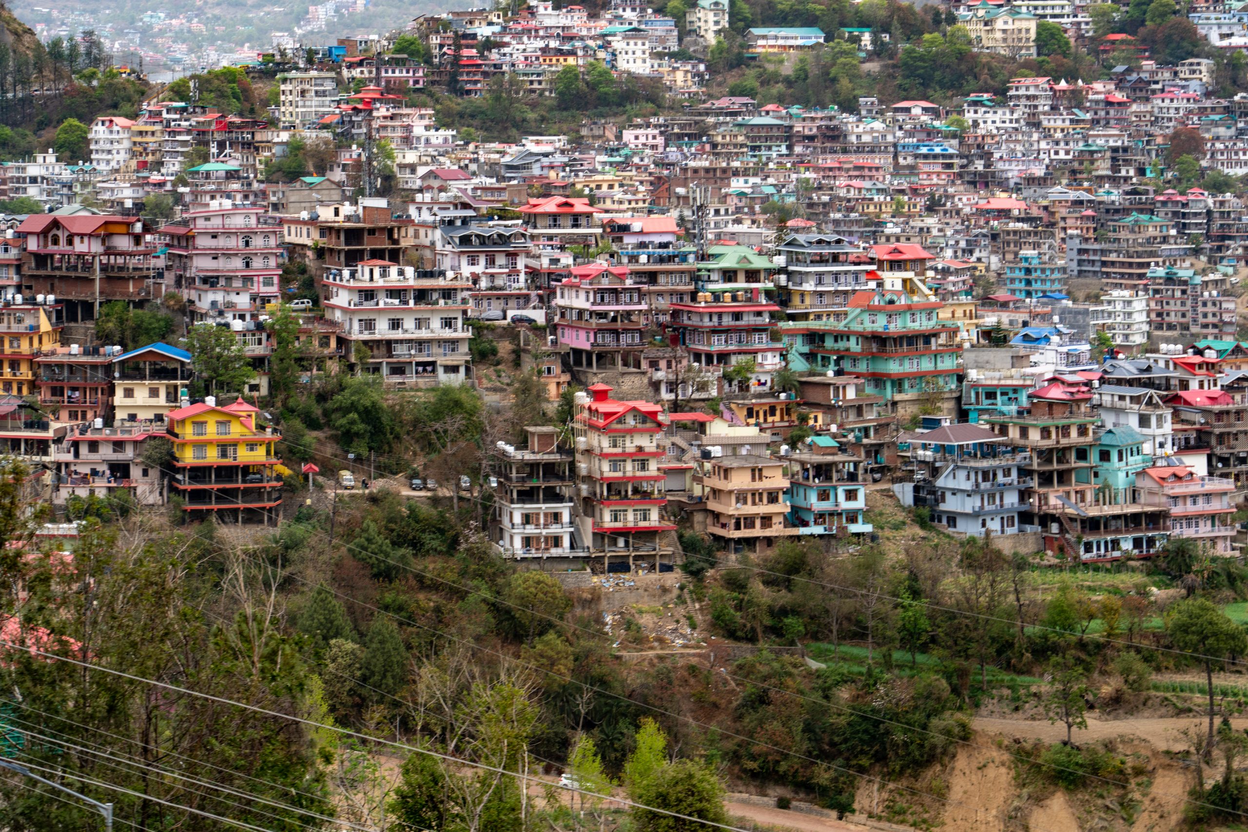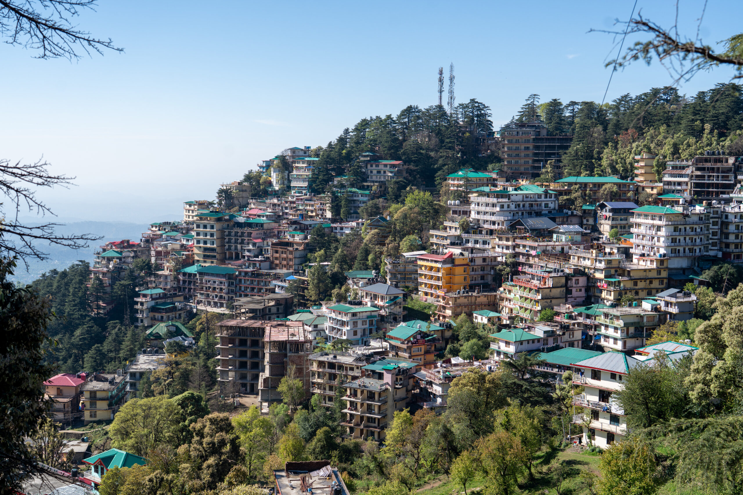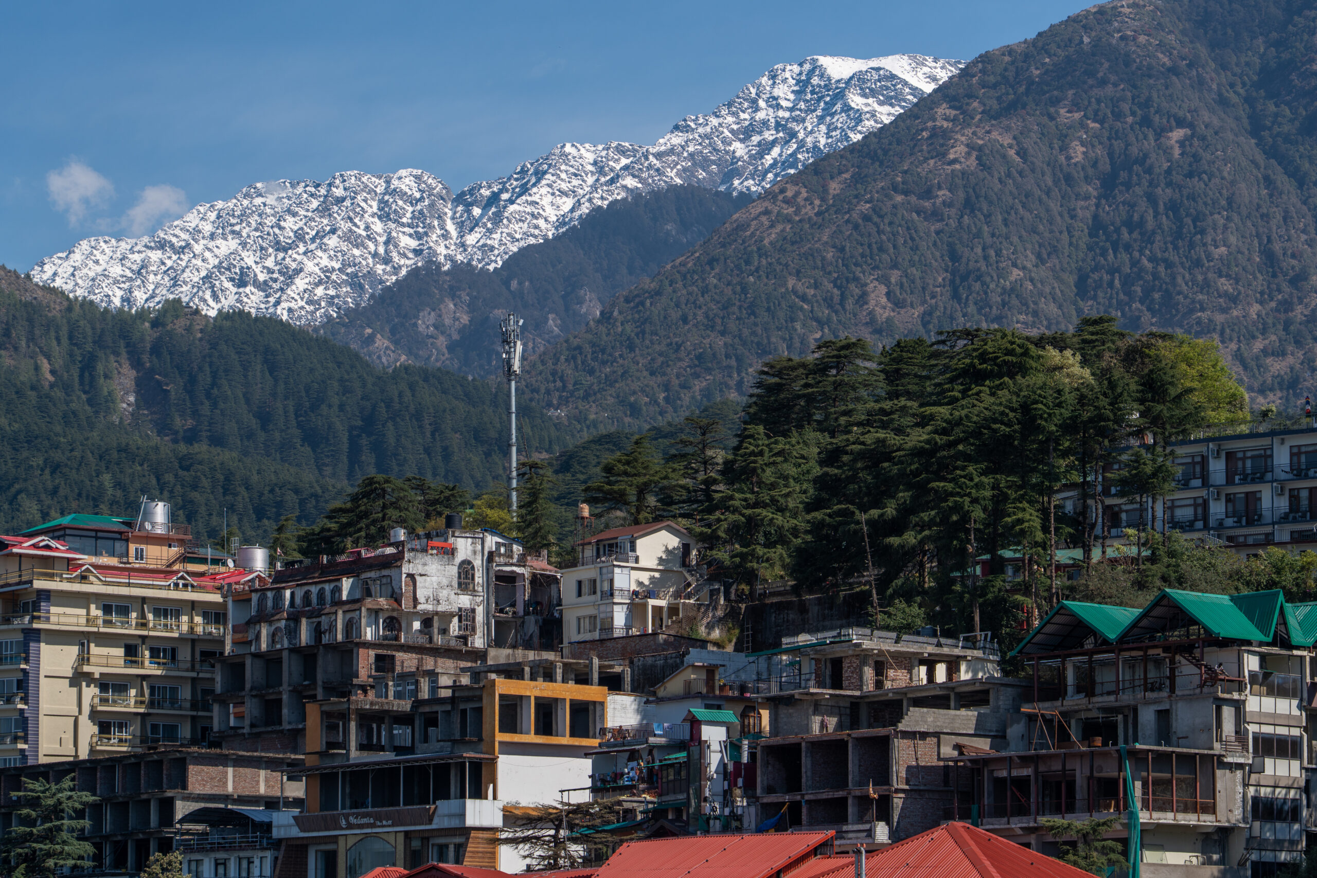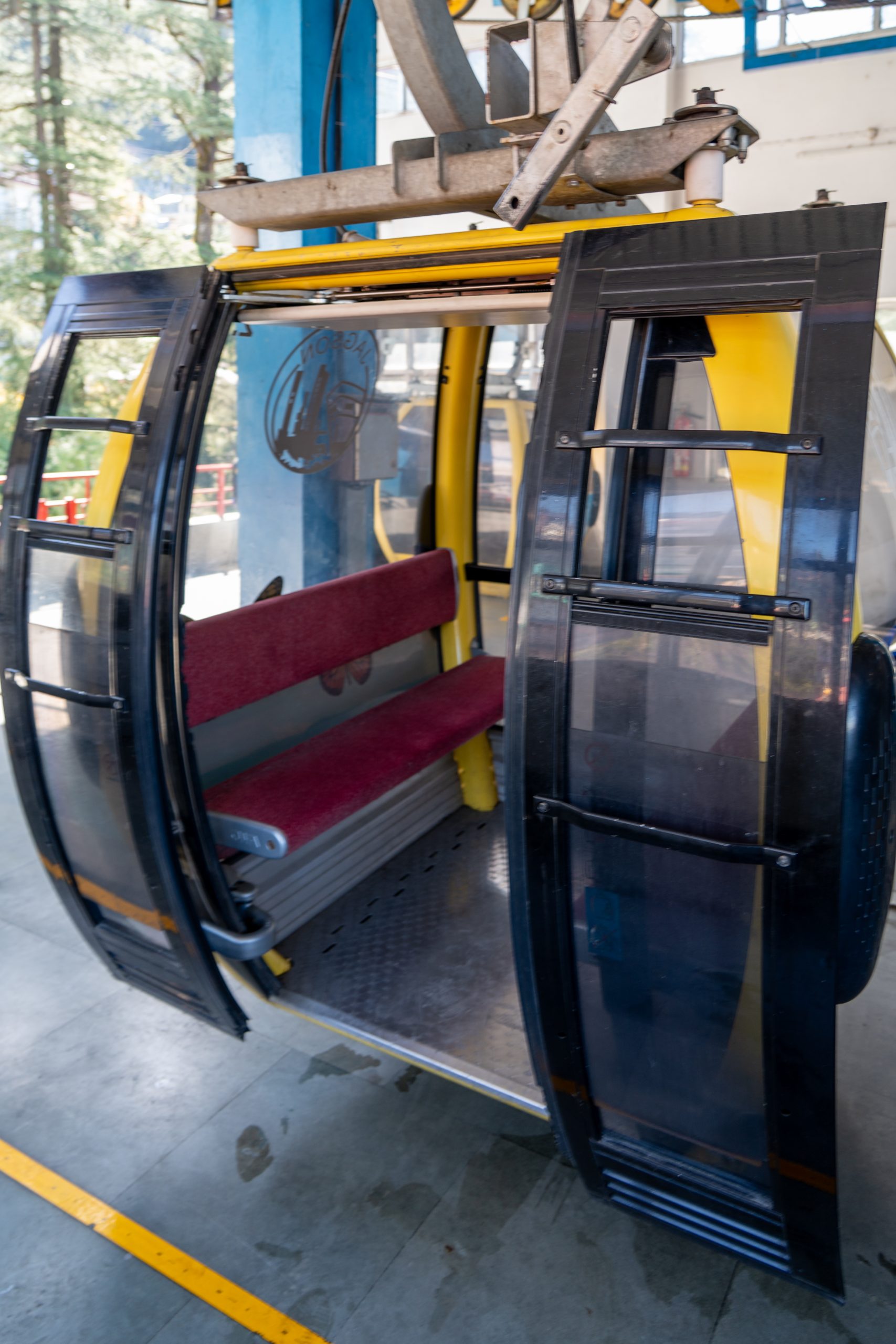 Around 11 O’clock the work was finished and the ropeway functional again. It connects the lower town to the popular hill destination of McLeod Ganj. Stretching about 1.8 km, the ropeway provides a quick 10-minute ride that replaces the longer, winding road journey. After I got my ticket, I boarded a gondola for the ride to Dharamsala and enjoyed stunning aerial views of the Dhauladhar mountains, forests, and Kangra Valley.