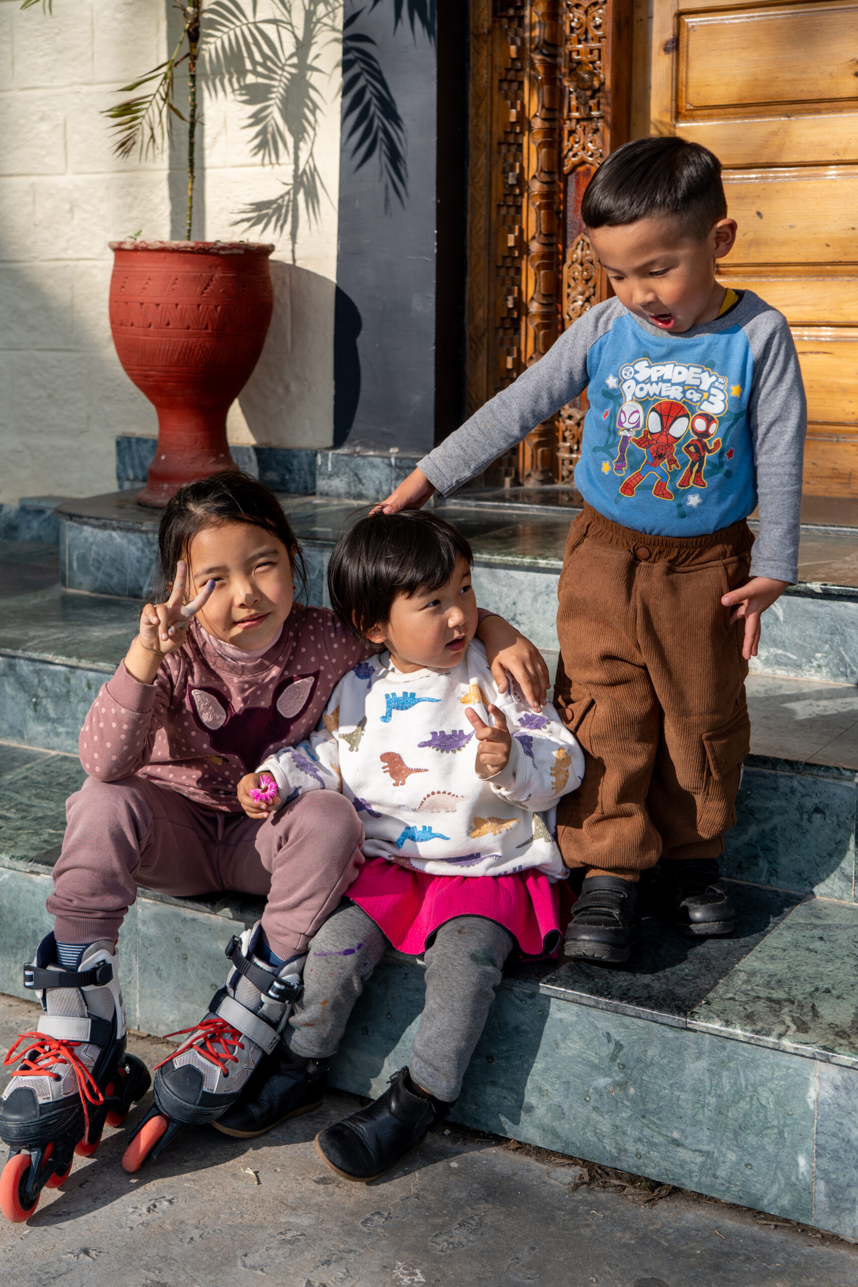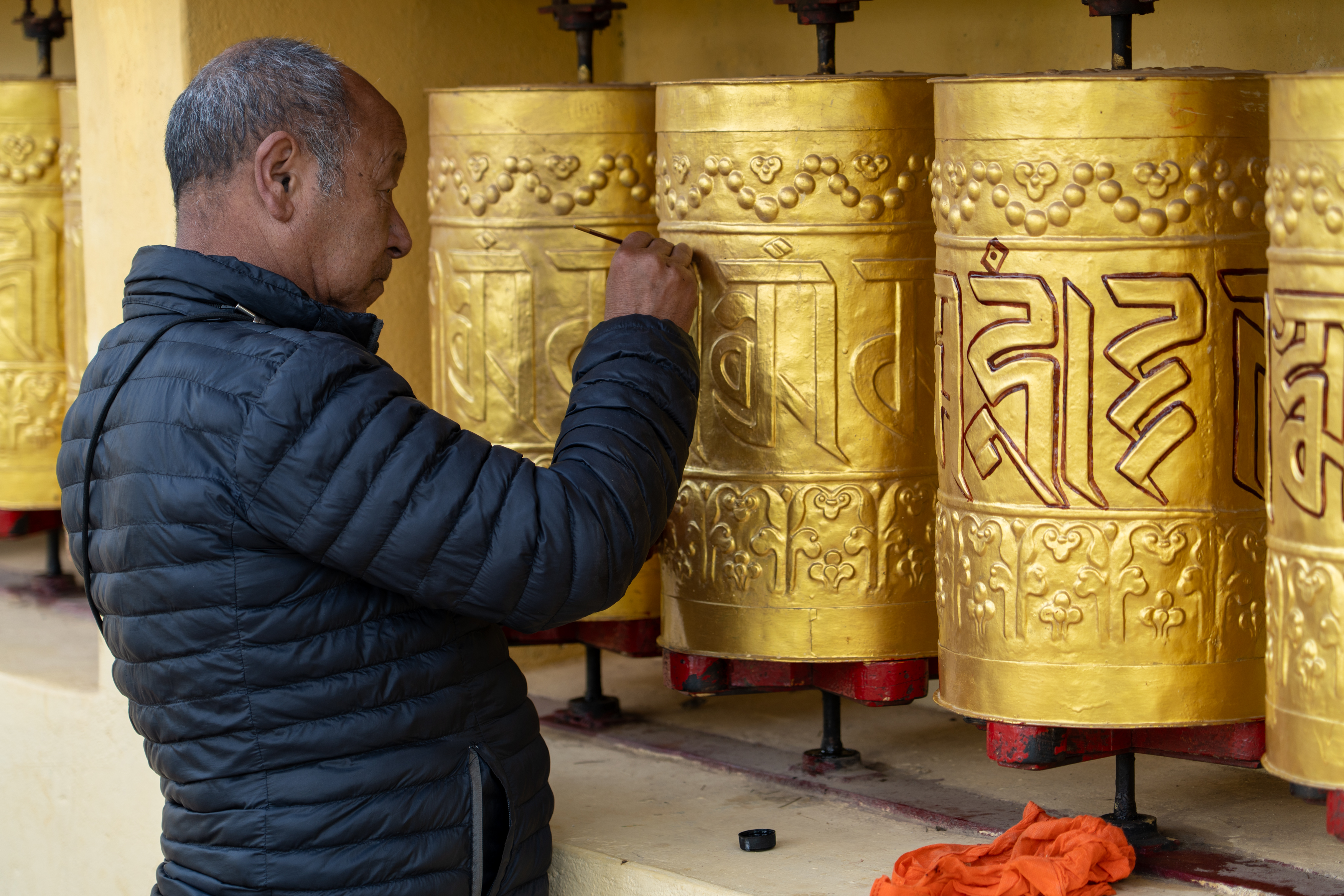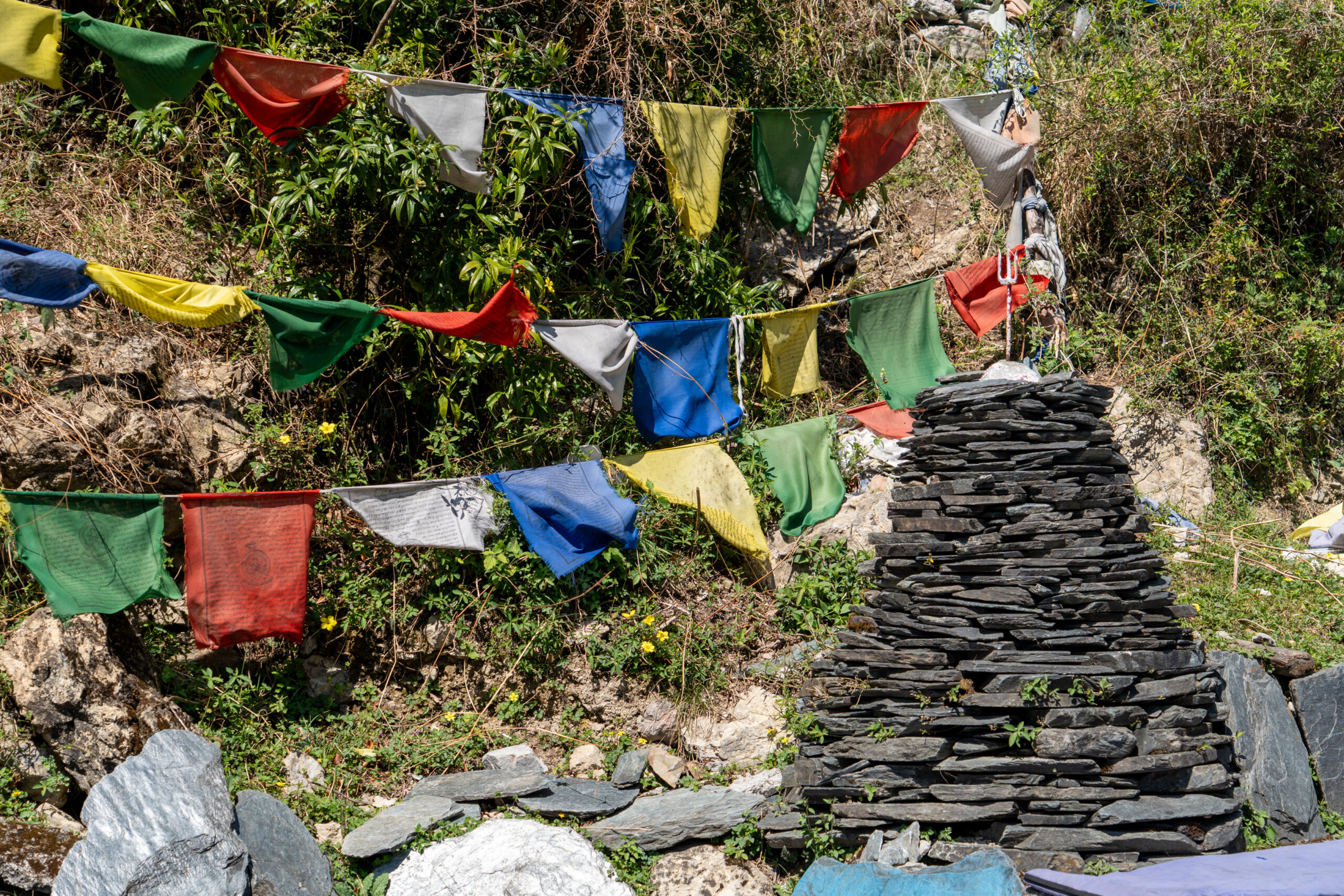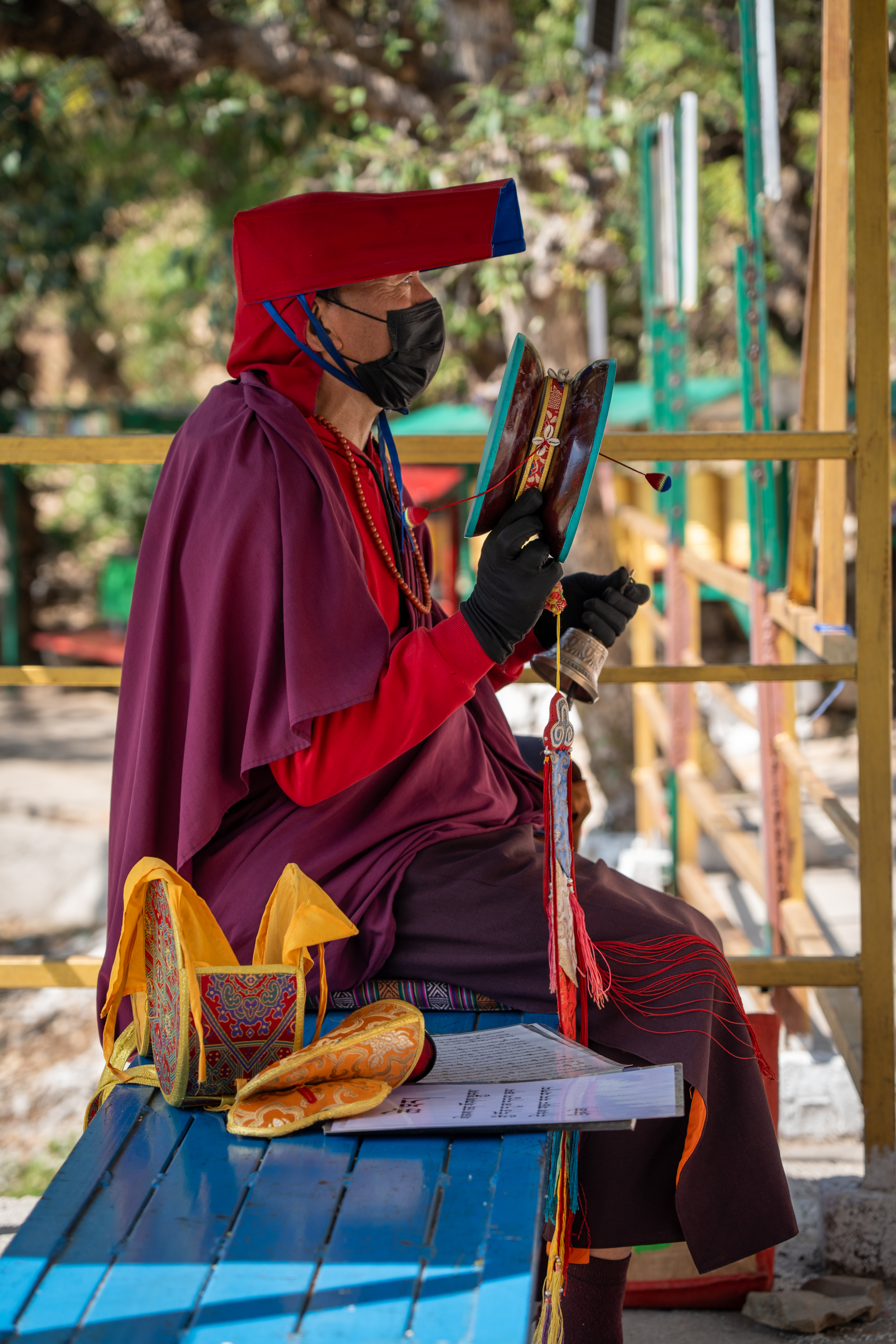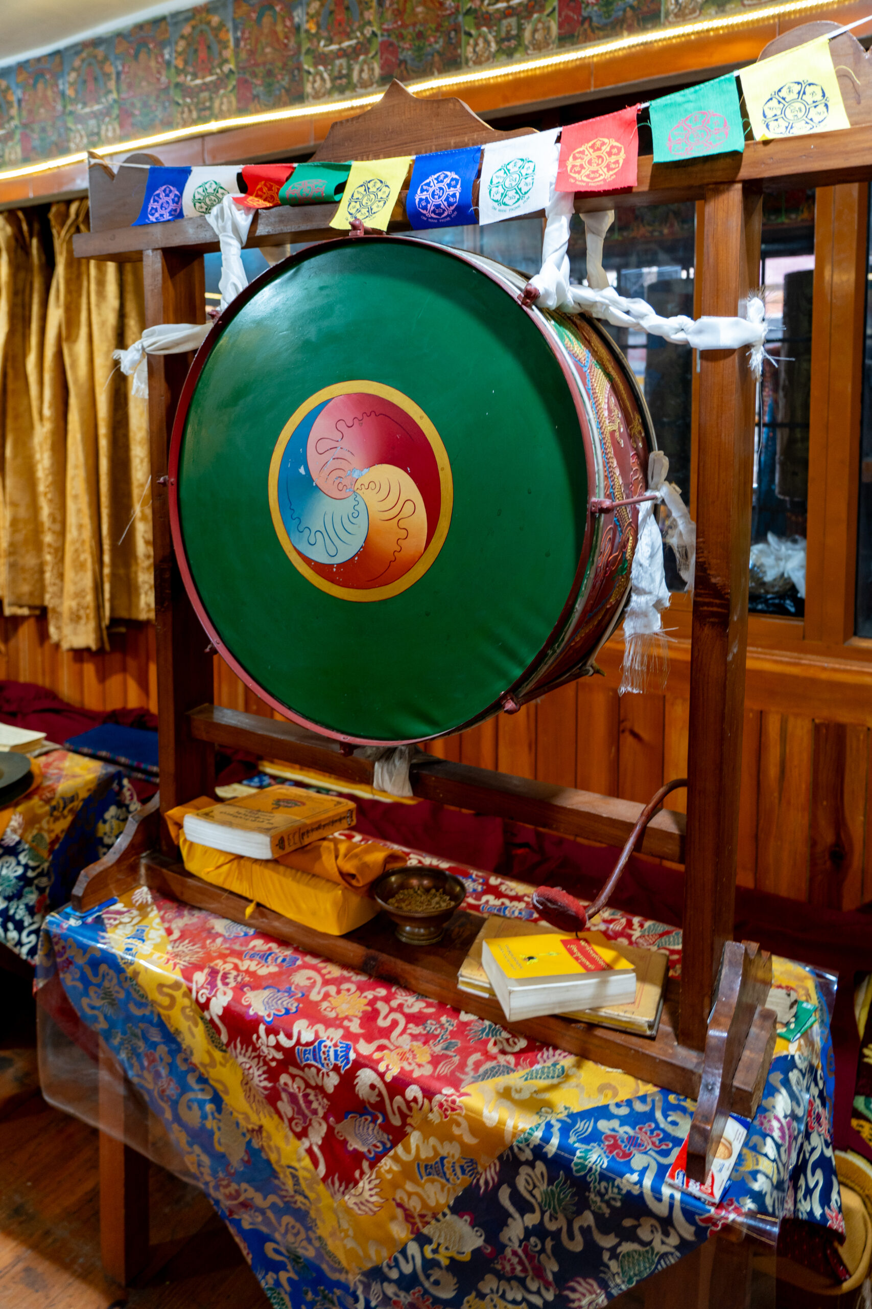 As it was still quiet, I decided to walk the Kora circuit around the temple, a peaceful walking path used for circumambulation, a sacred Buddhist practice. Lined with prayer wheels, fluttering flags, and small shrines, the trail winded through quiet forested areas and offered beautiful views of the mountains. According tradition I walked the circuit clockwise, spinned some wheels and chanted “Om Padme Hum”, which created a calm, almost meditative atmosphere that reflected Tibetan spiritual traditions.
