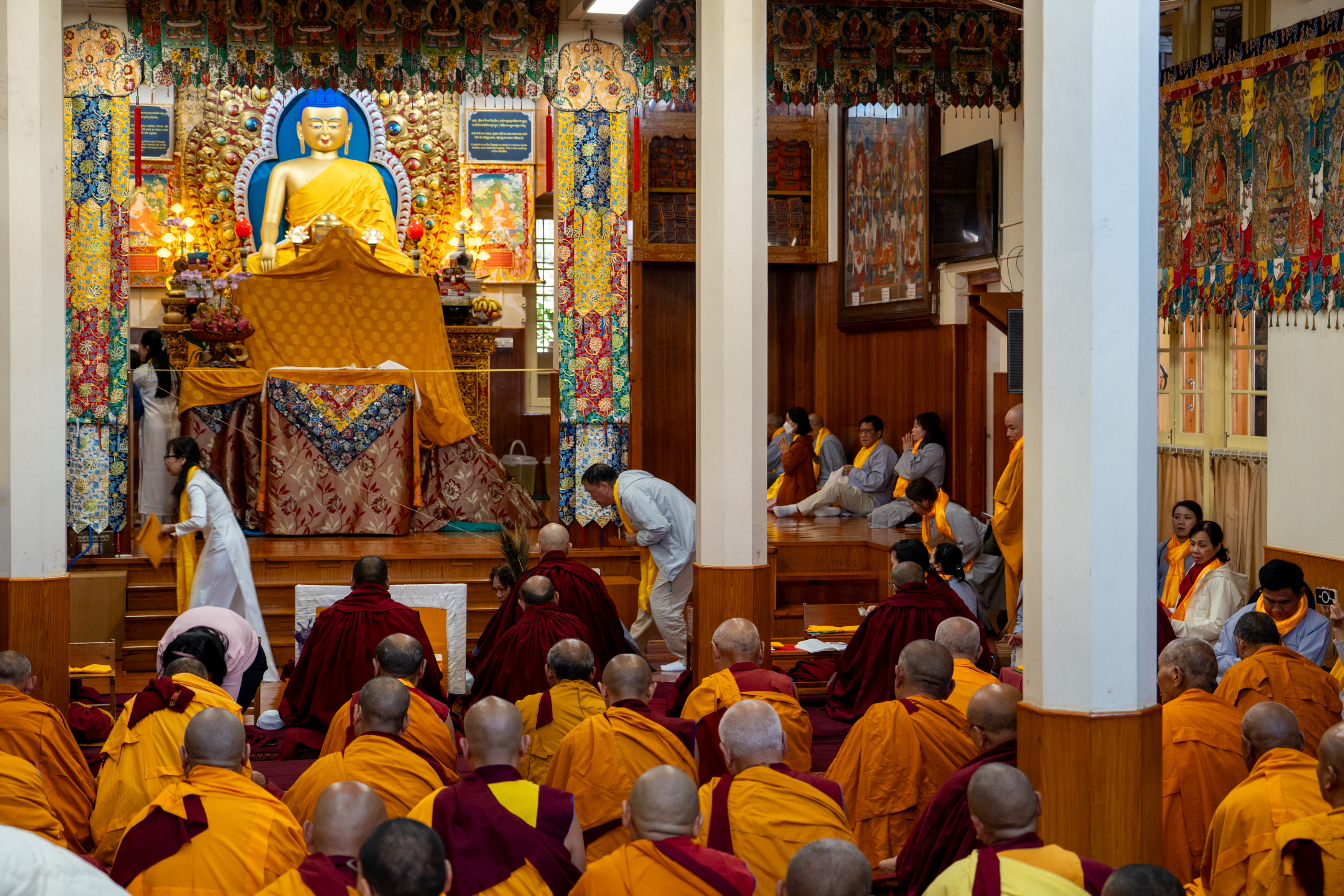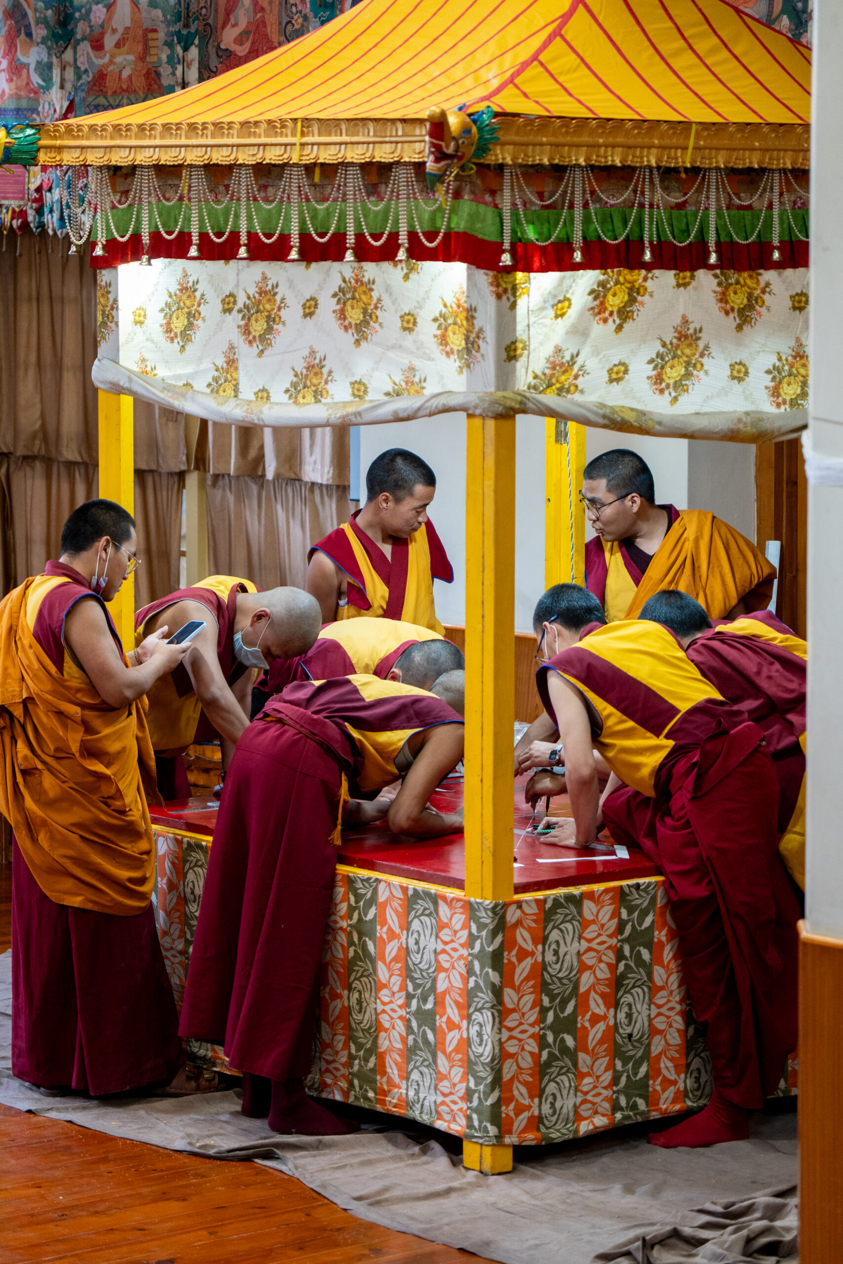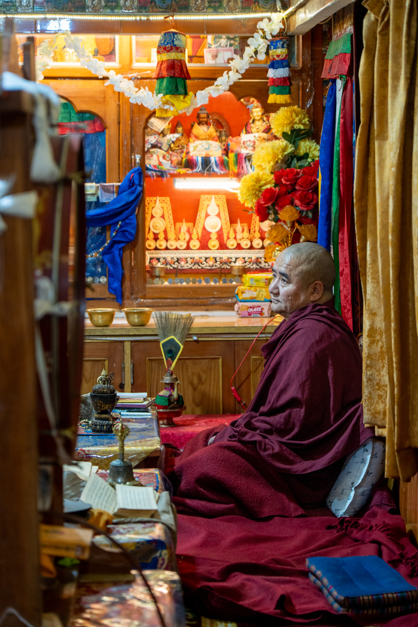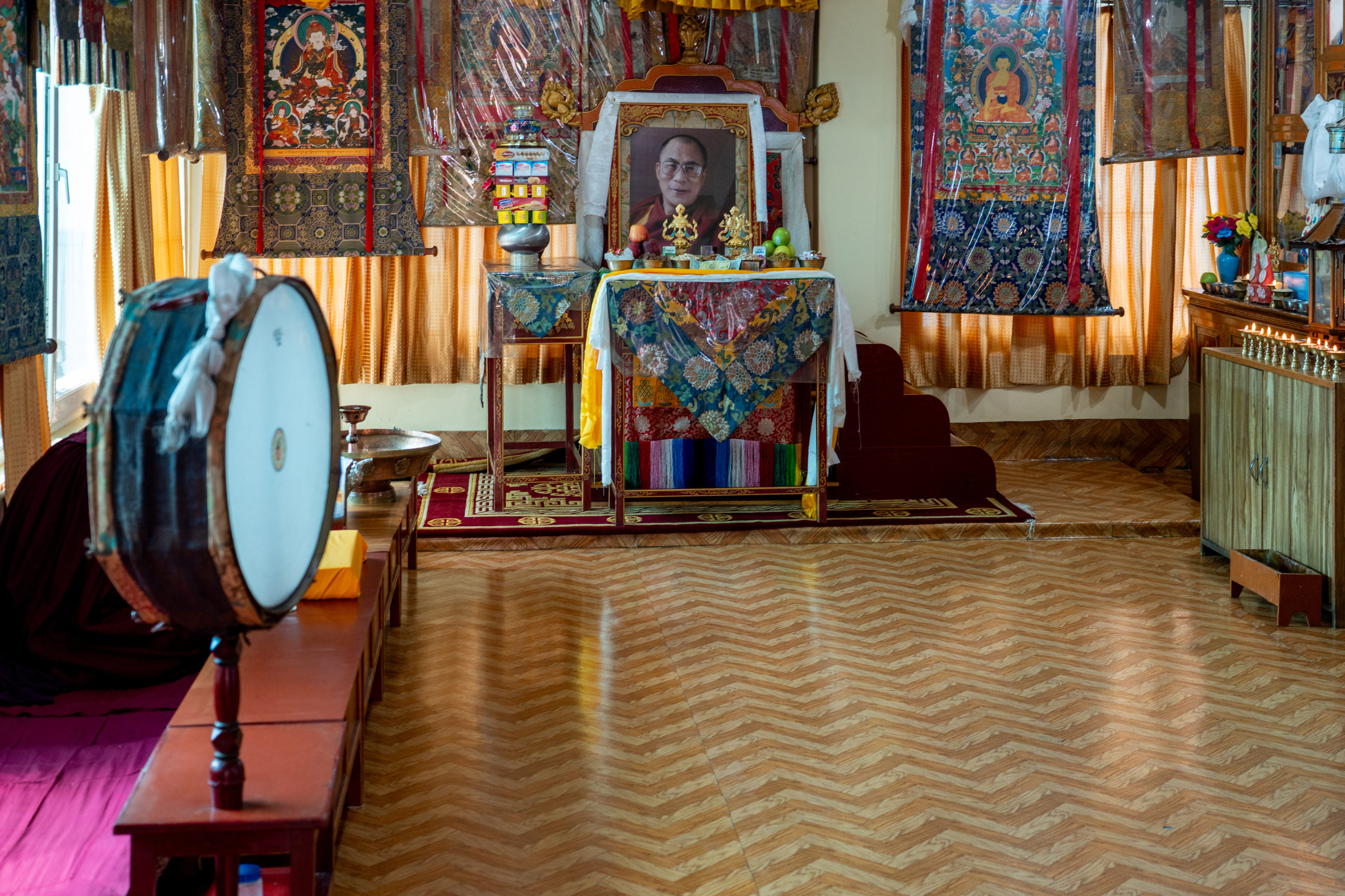 In the main prayer hall monks were reciting holy scripts whilst another group was preparing to make a sand mandala. As the morning prayers were over, I was allowed to visit the main altar where I saw massive statues from some deities, as well as the throne of the Dalai Lama where he is seated when he attends the prayers.