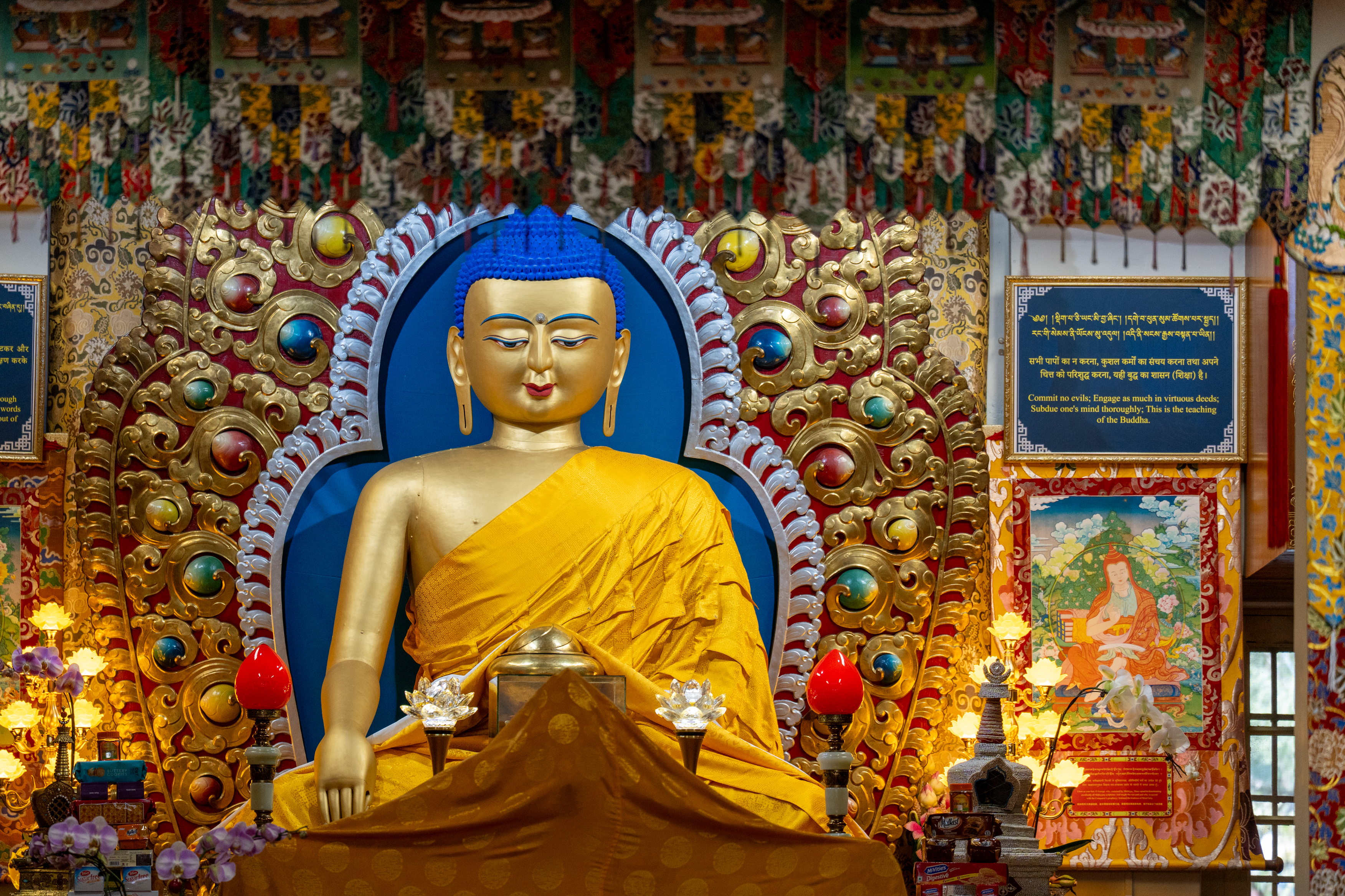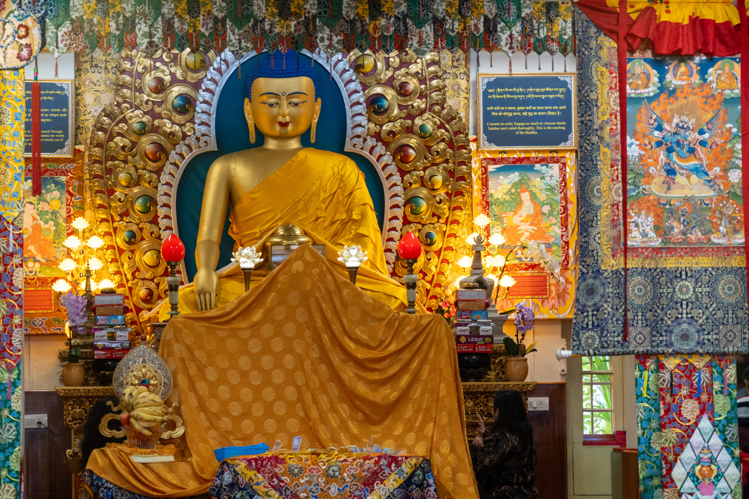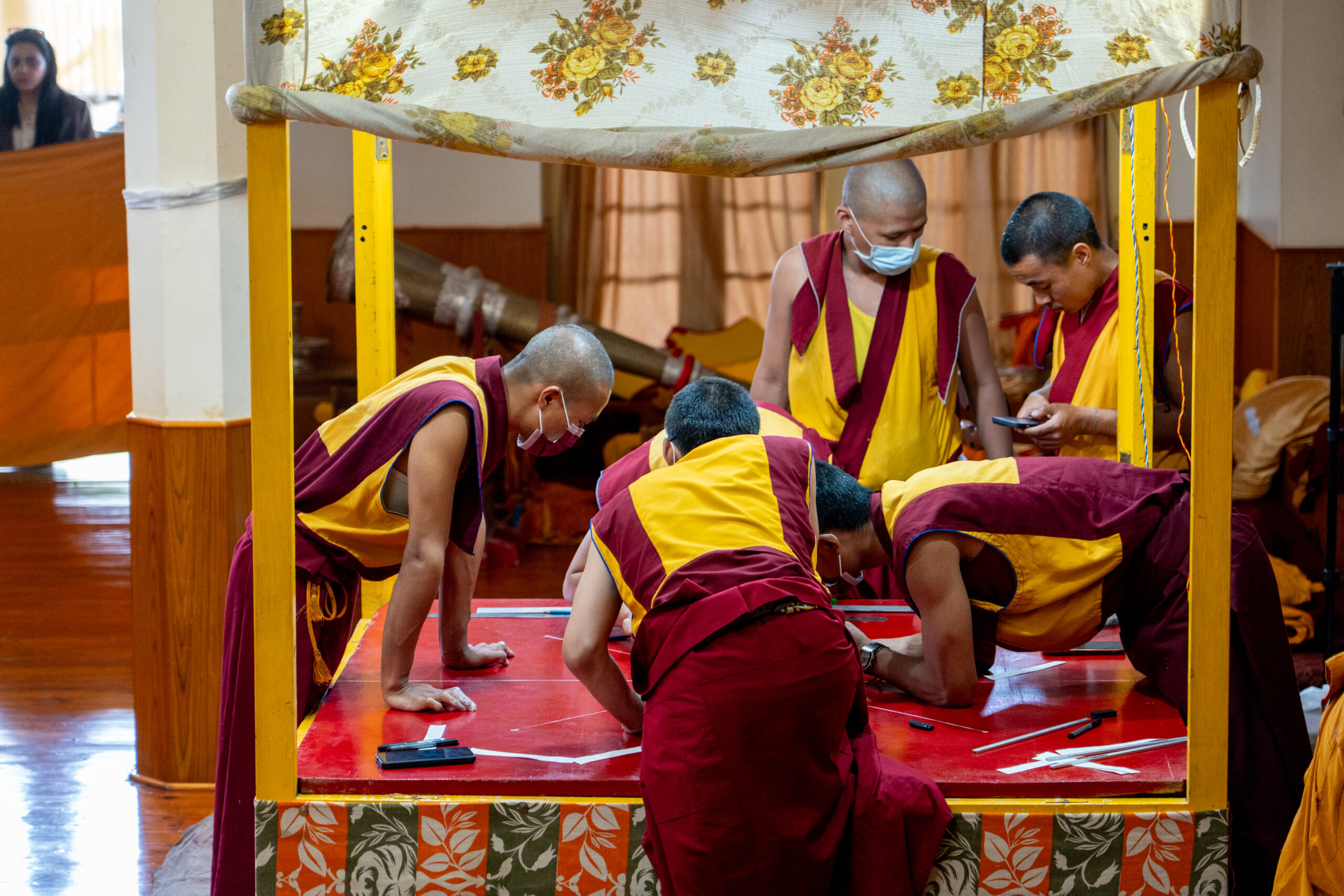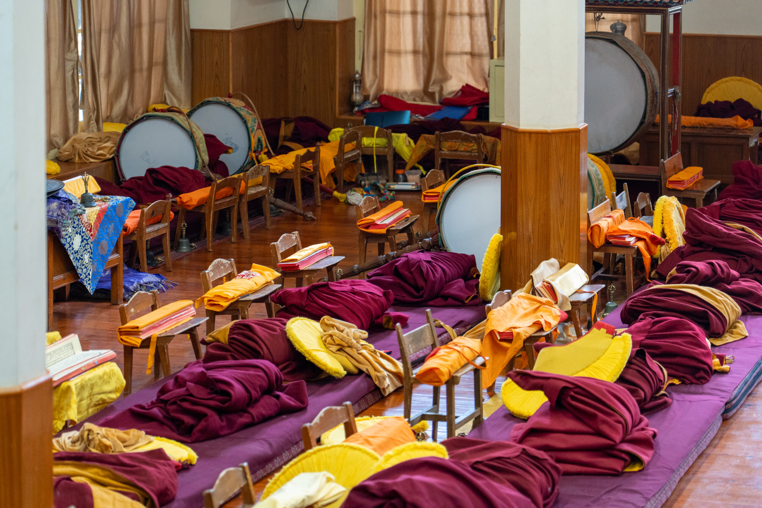 In the main prayer hall monks were reciting holy scripts whilst another group was preparing to make a sand mandala. As the morning prayers were over, I was allowed to visit the main altar where I saw massive statues from some deities, as well as the throne of the Dalai Lama where he is seated when he attends the prayers.