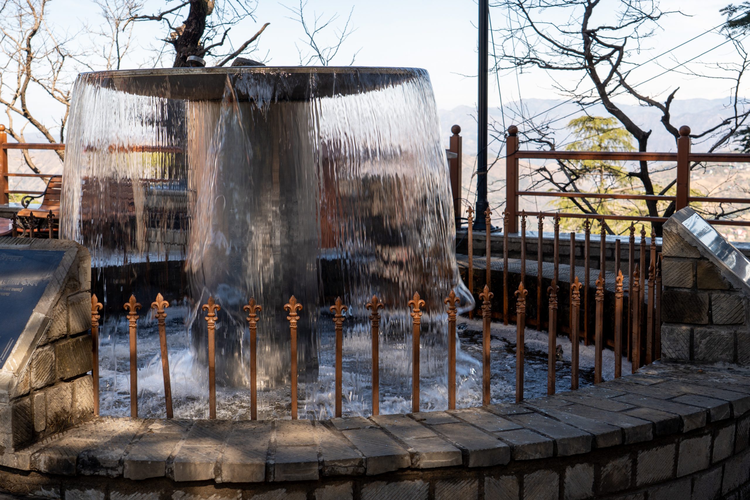 At the upper end, the road opened dramatically into The Ridge, a wide, open plaza that felt like a pause in the town’s flow. Unlike the narrow intimacy of the mall, the Ridge is expansive and airy. In spite of the mist that was building up It still offered sweeping views of the surrounding mountains, with layers of hills stretching into the distance.