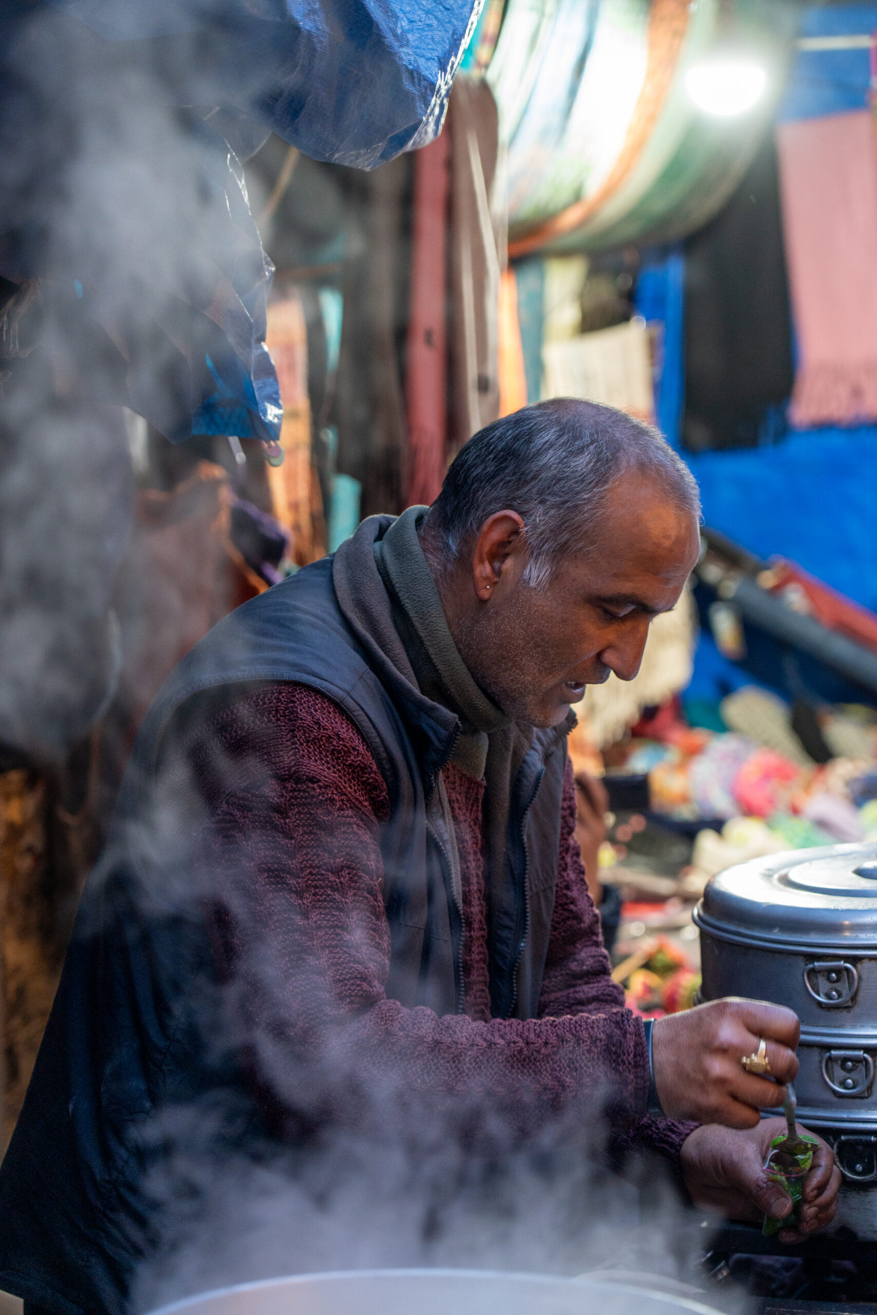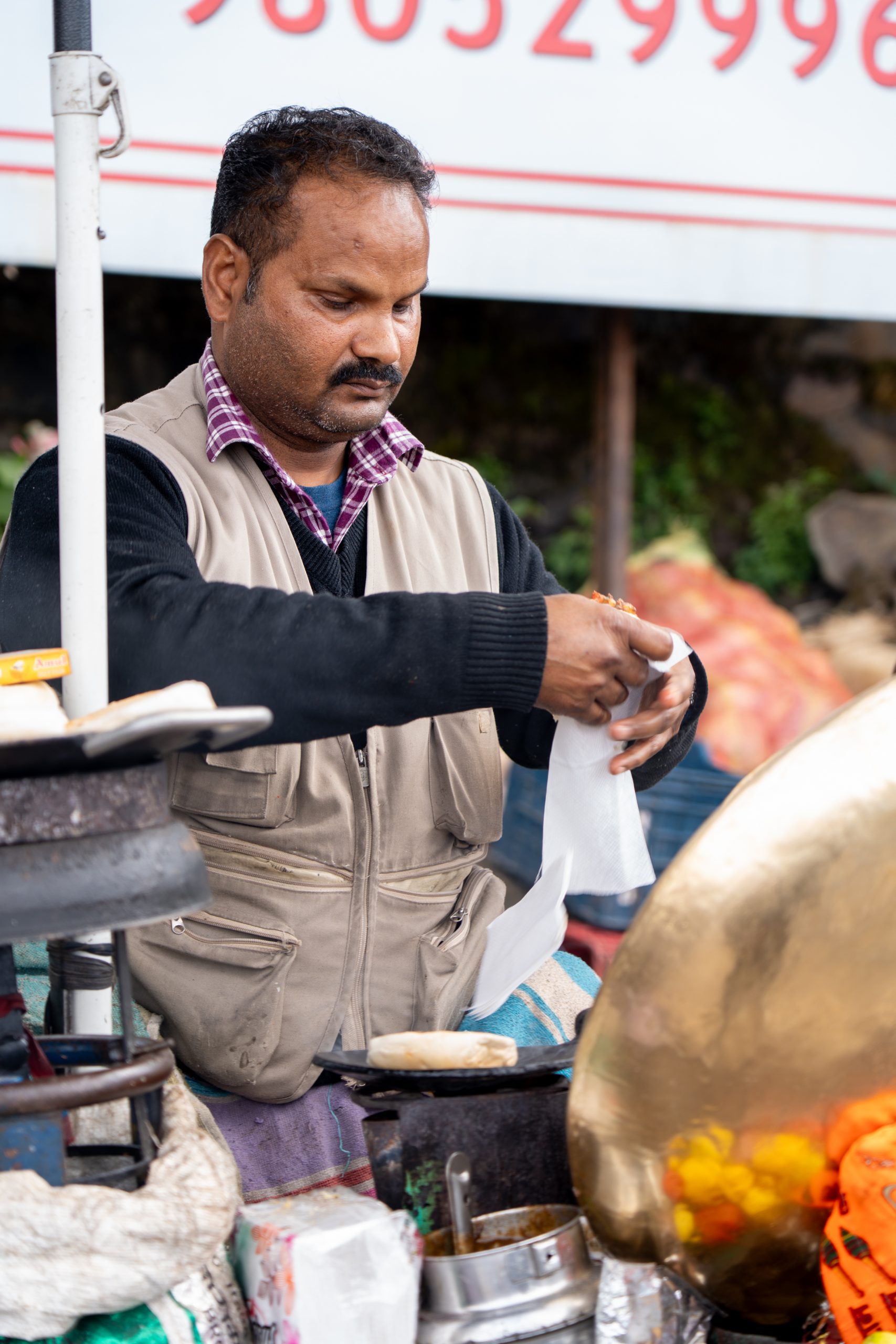 In the evening I went out again to make a series of photos from street food. Well, one certainly can’t deny the Indians have a sweet bite, but there were also plenty of stalls with savoury bites. Even the street dogs got their share of food, something I really enjoyed watching.