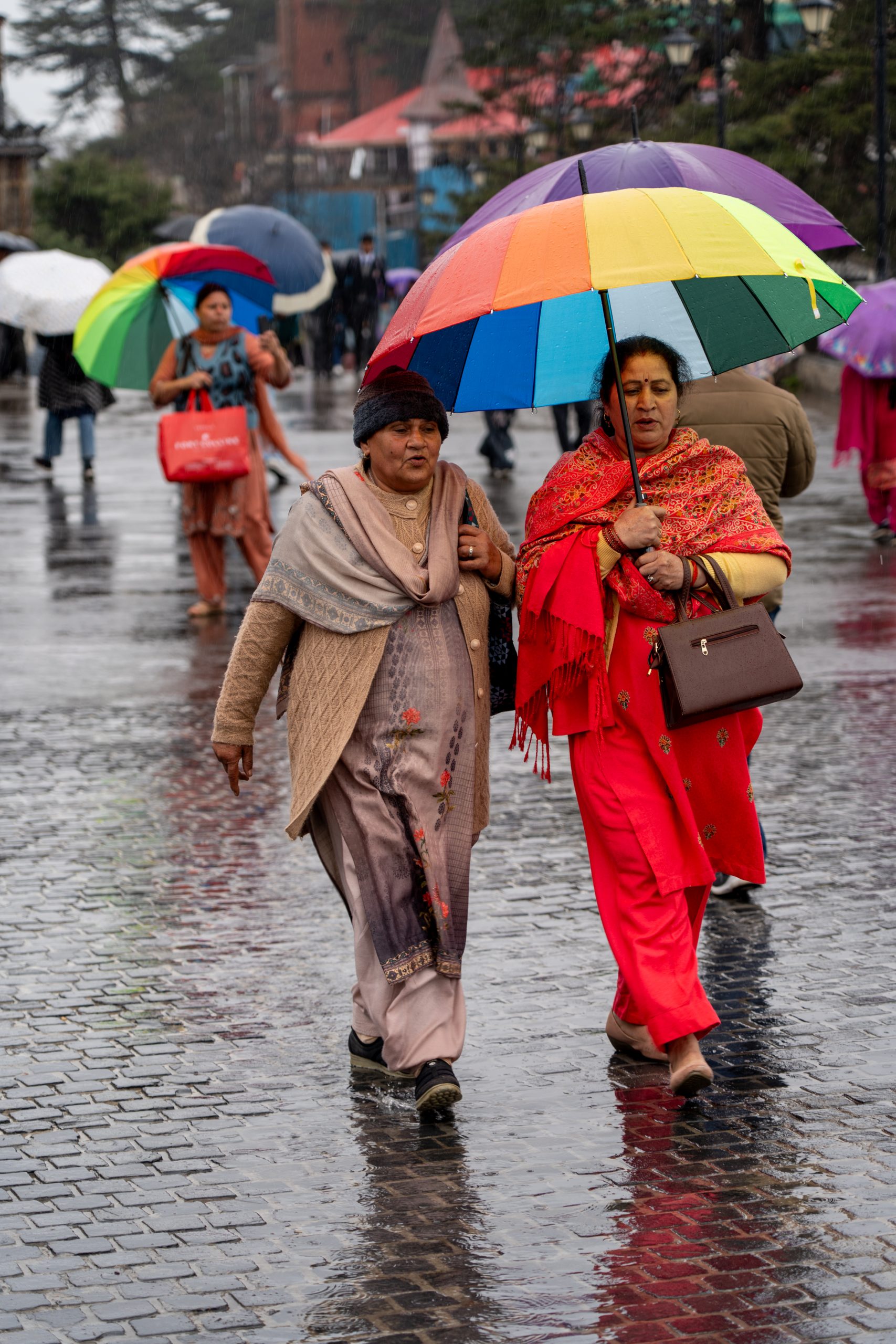 Umbrellas bloomed in every colour, and drifted past like slow-moving flowers. Locals walked unhurriedly, accustomed to this mountain drizzle, and I could not be bothered by the rain, I was just tremendously enjoying the atmosphere.