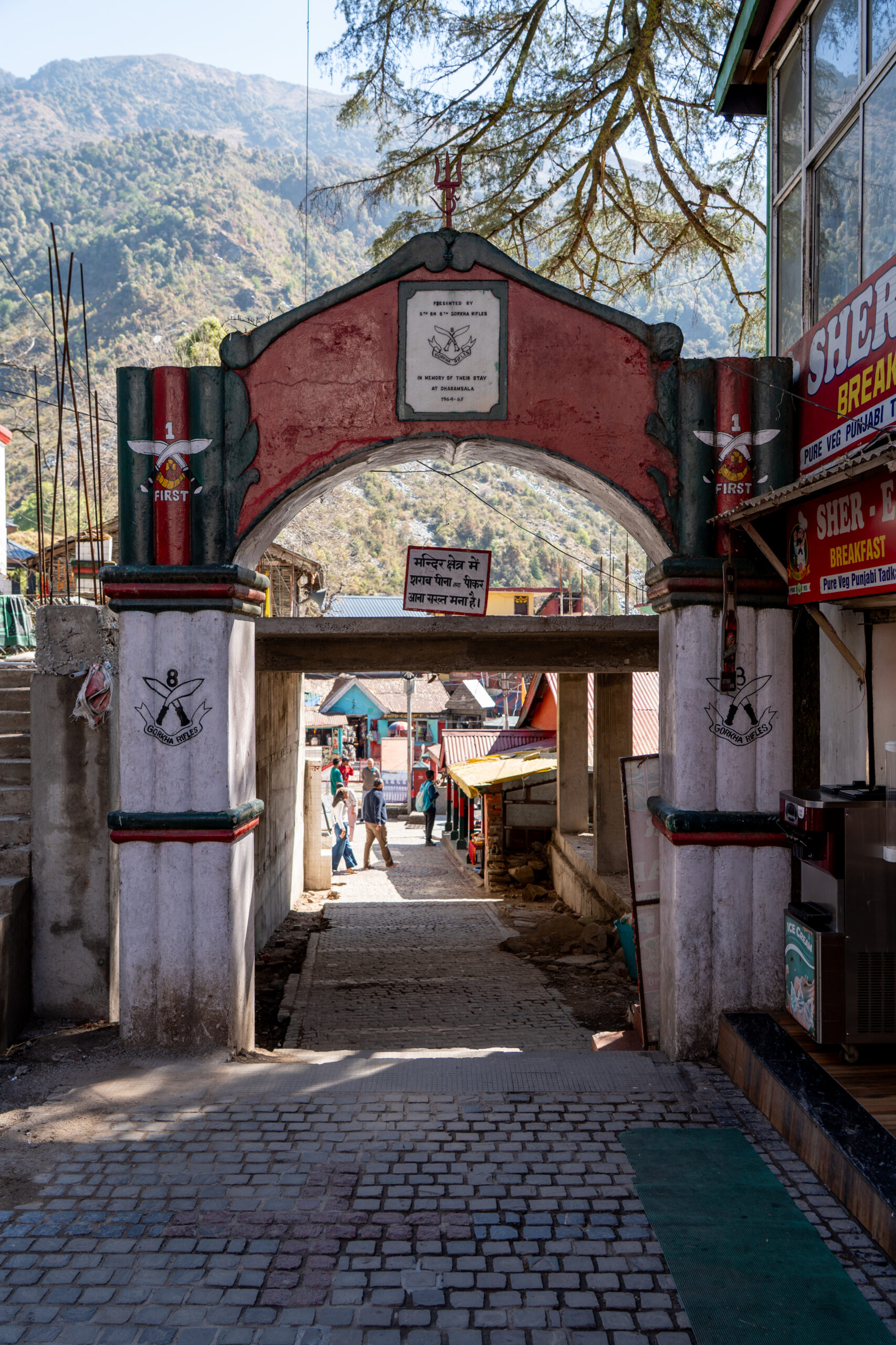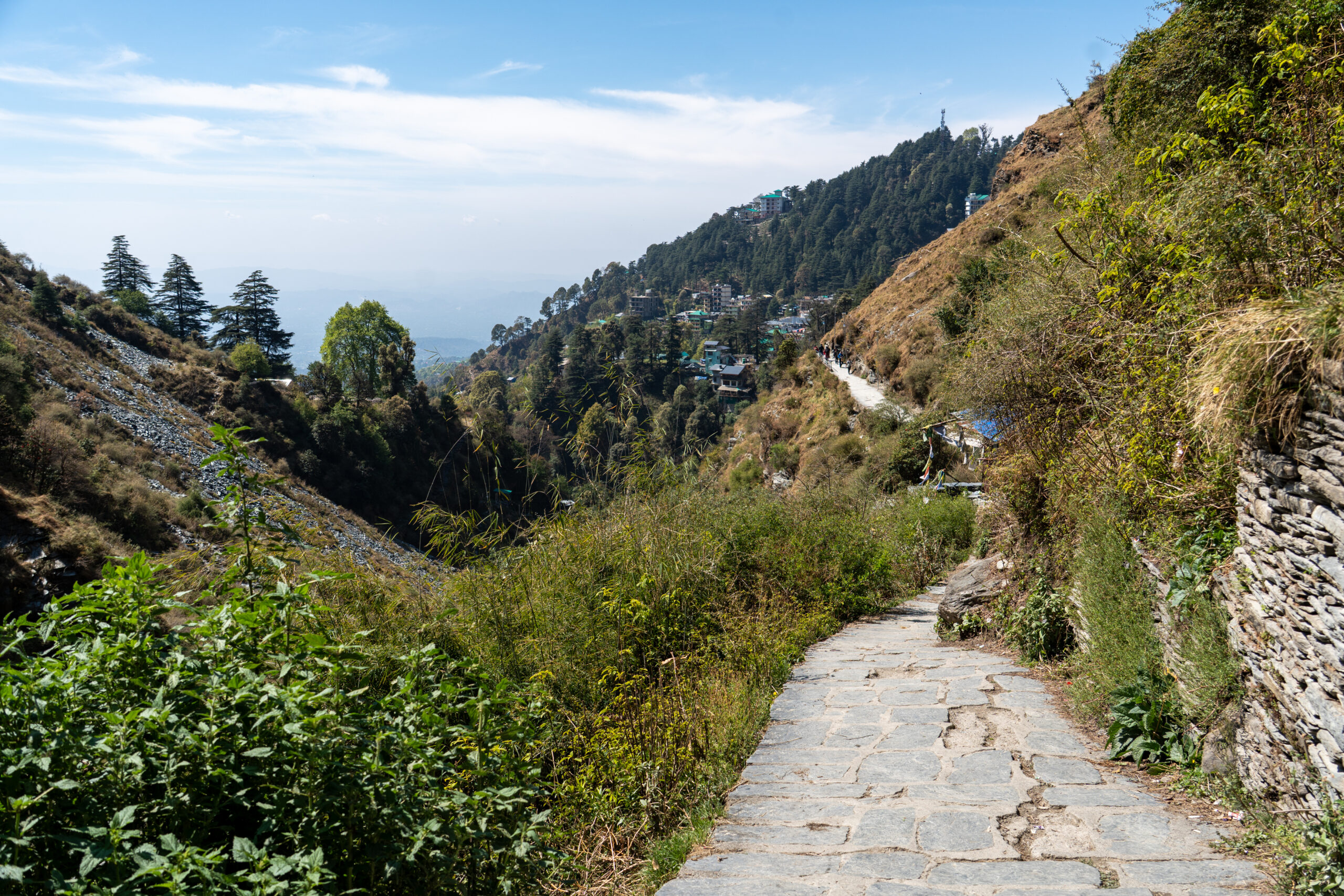 Back at Bhagsu I decided to continue my hike to Dharamkot, a short but noticeably steeper uphill walk. I left the busier lower area behind and followed narrow paths and small roads that winded upward through pine and deodar forests. As I approached Dharamkot, the atmosphere became calmer and more laid-back, with yoga centres, cafés, and guesthouses nestled among the trees.