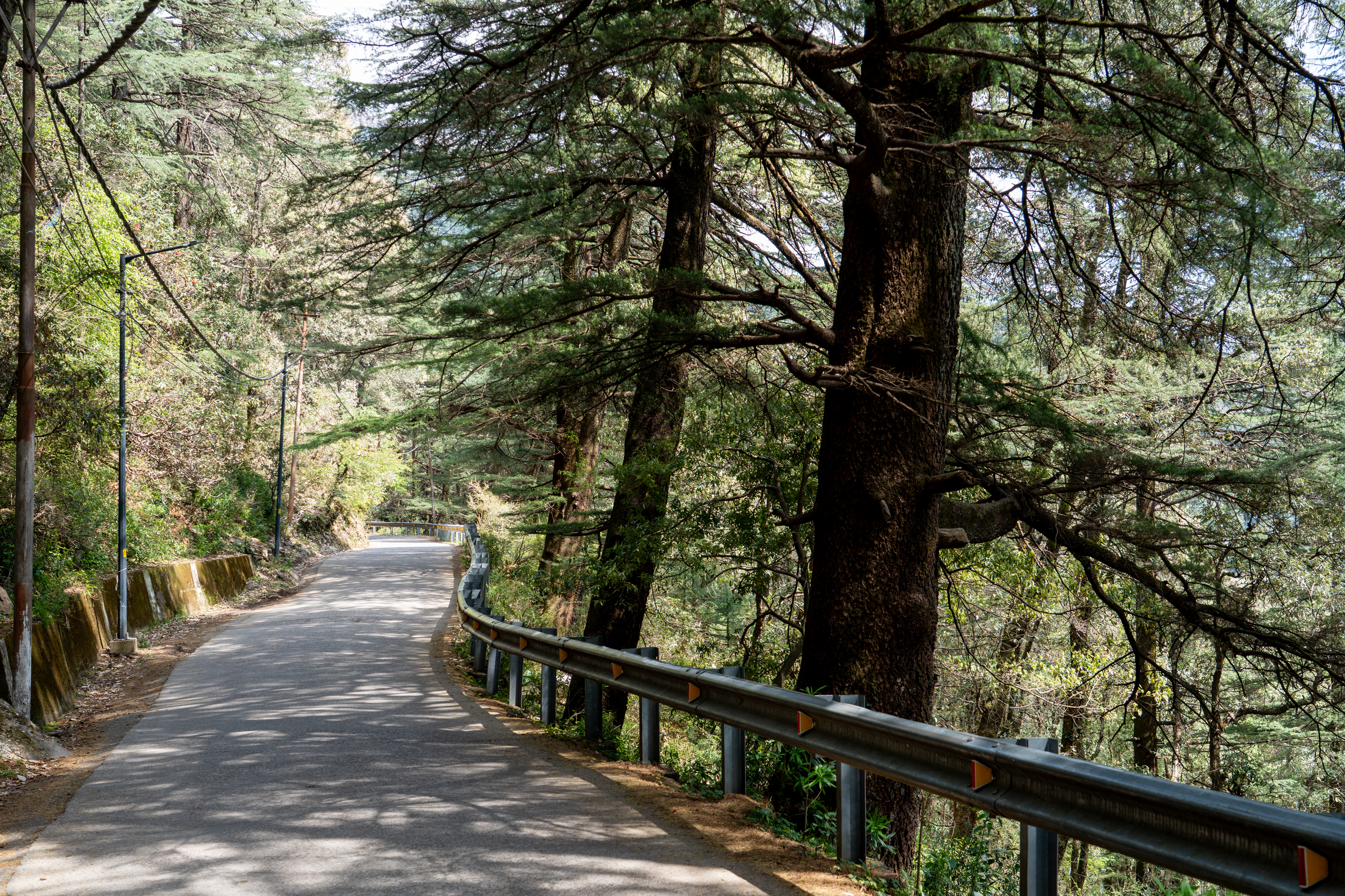 When we approached Palampur, the scenery became especially striking with lush tea gardens and clear views of the Dhauladhar Range, which once again made my haw drop. From Dharamshala, the final climb to McLeod Ganj was steeper and more winding, with narrower roads, cooler air, and dense forest, ending in a vibrant hill town set against dramatic mountain backdrops.