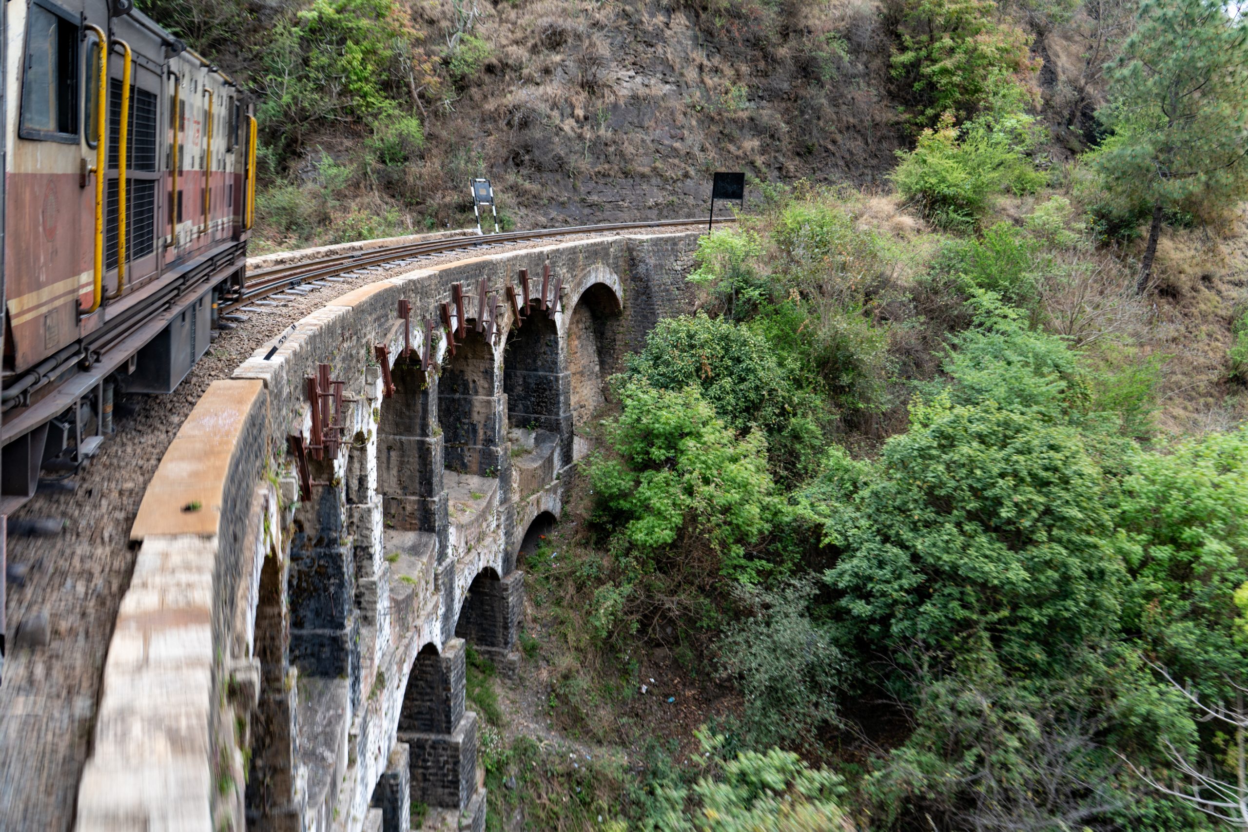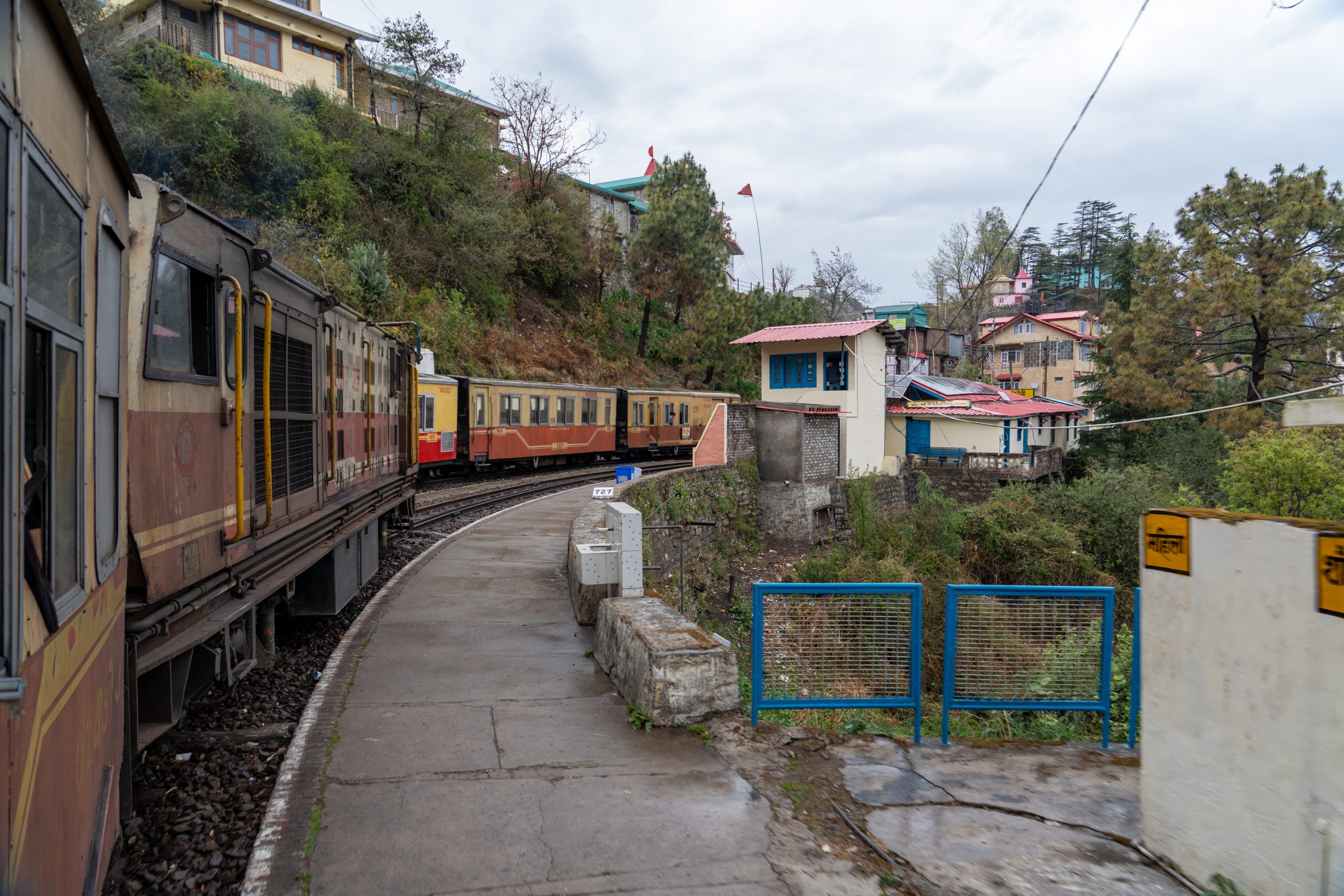 It is known as one of the most scenic and charming rail experiences in India. When we left Kalka the landscape quickly transformed from plains to hills and it did not take long before we drove through lush green hills dotted with pine, oak end deodar trees. Steep valleys and mountains opened up on both sides of the train and I spotted many hillside villages with colourful houses clinging on the slopes.
